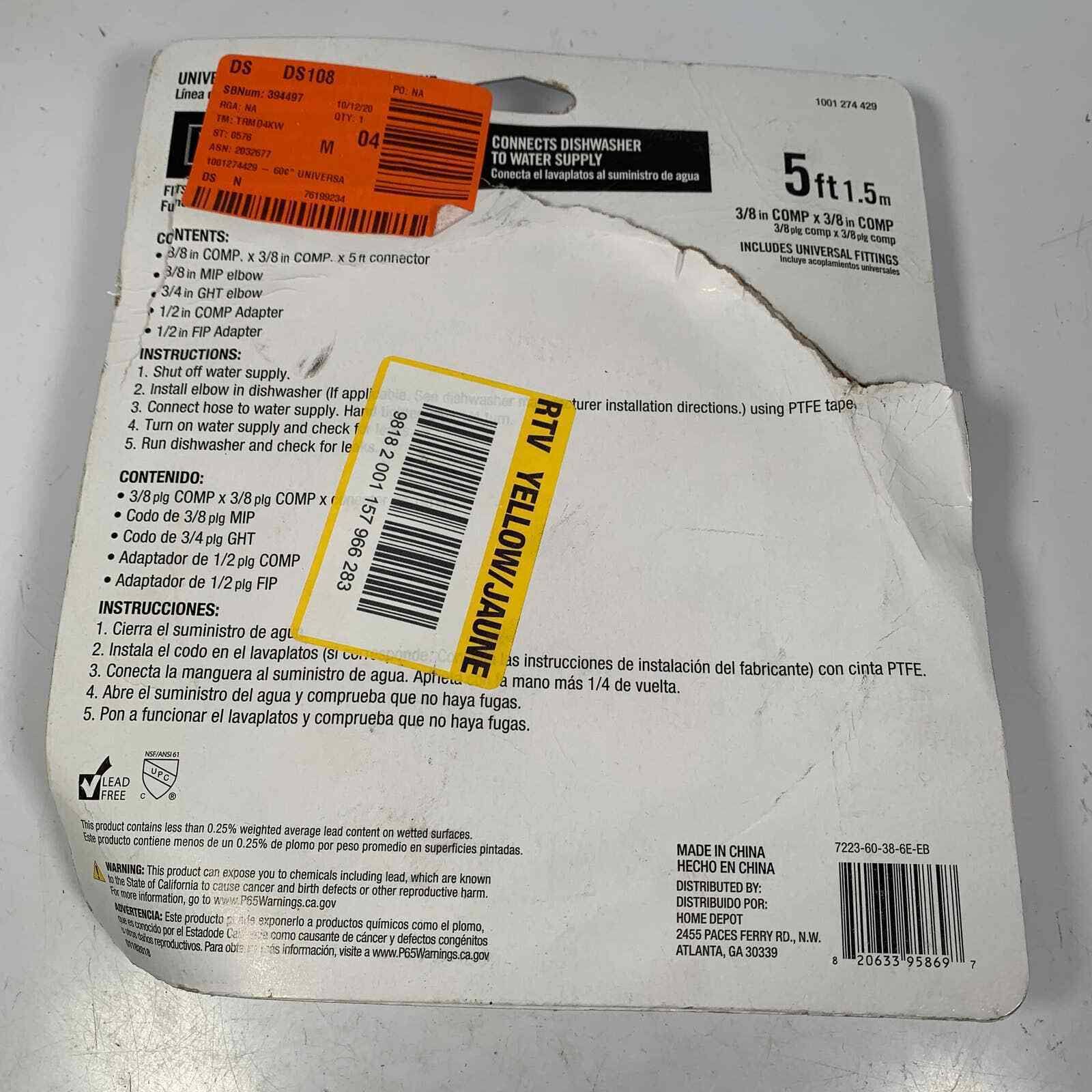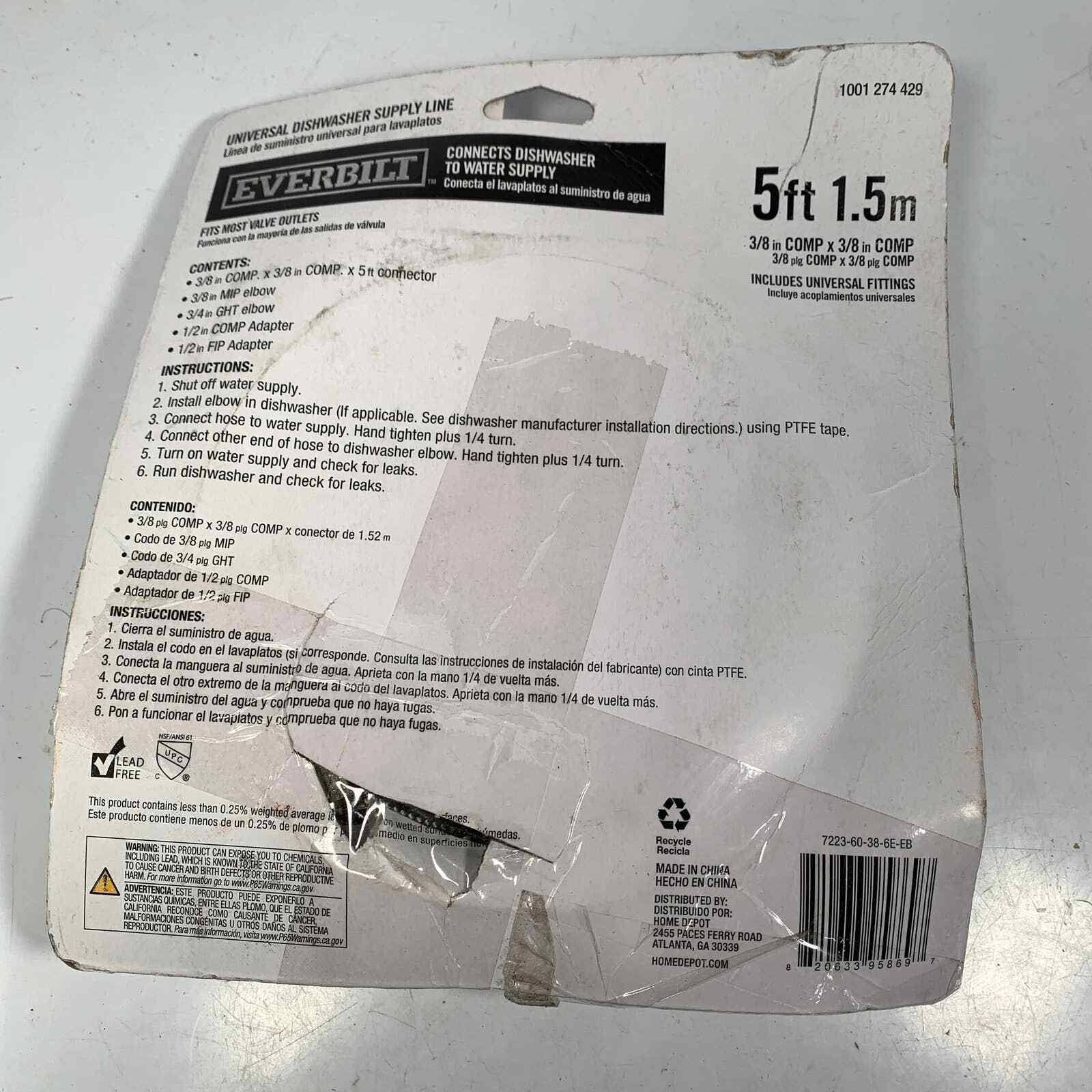 Everbilt 3/8 in. x 60 in. Stainless Steel Universal Dishwasher Supply Line