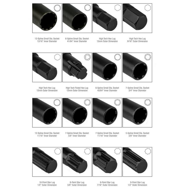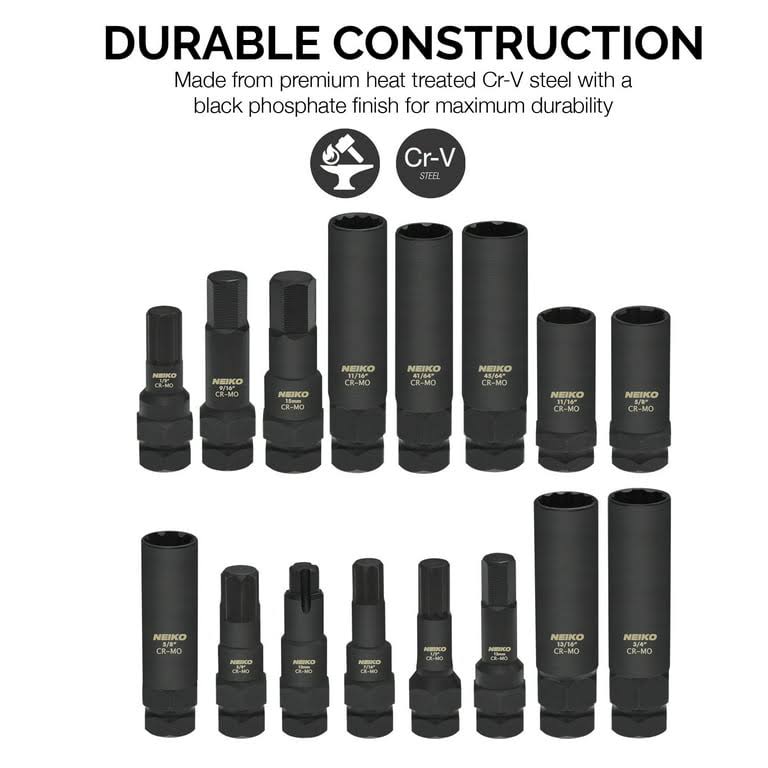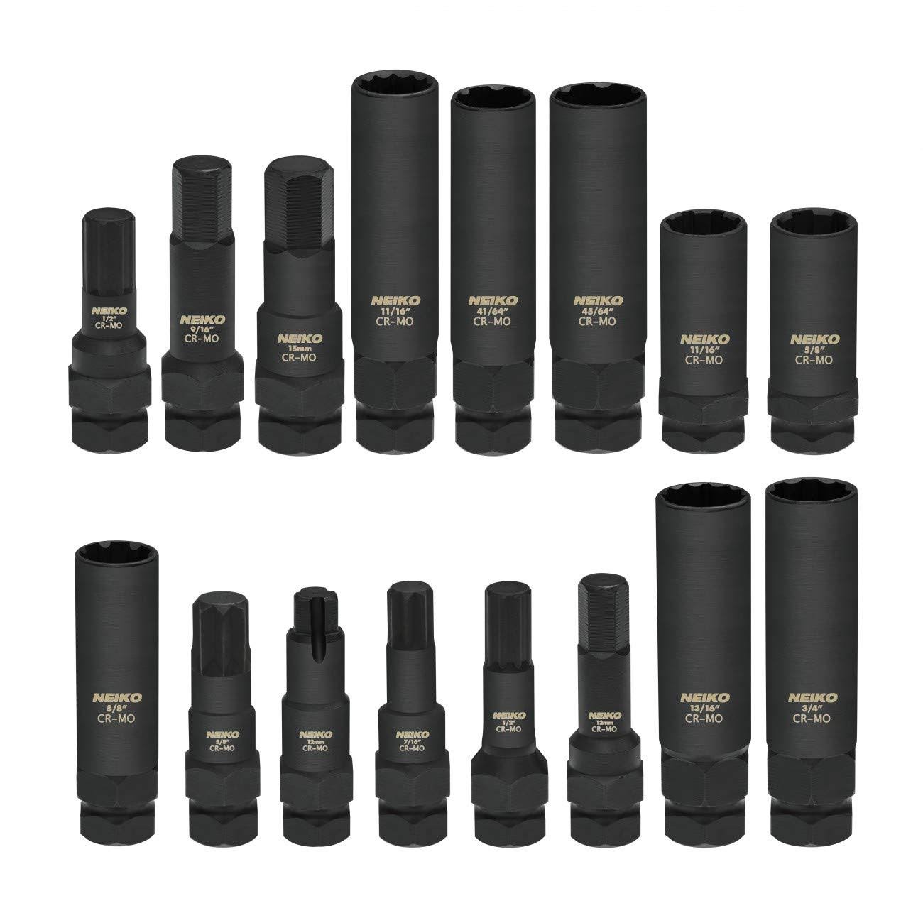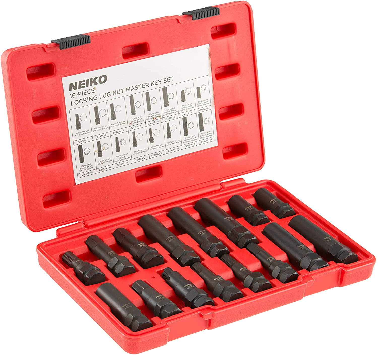 Neiko 02457A Lug-Nut Key Set, Wheel-Lock Removal Tool Kit for Aftermarket and Factory Wheel Tire Keys, SAE and Metric Lug Sockets, 16 Pieces