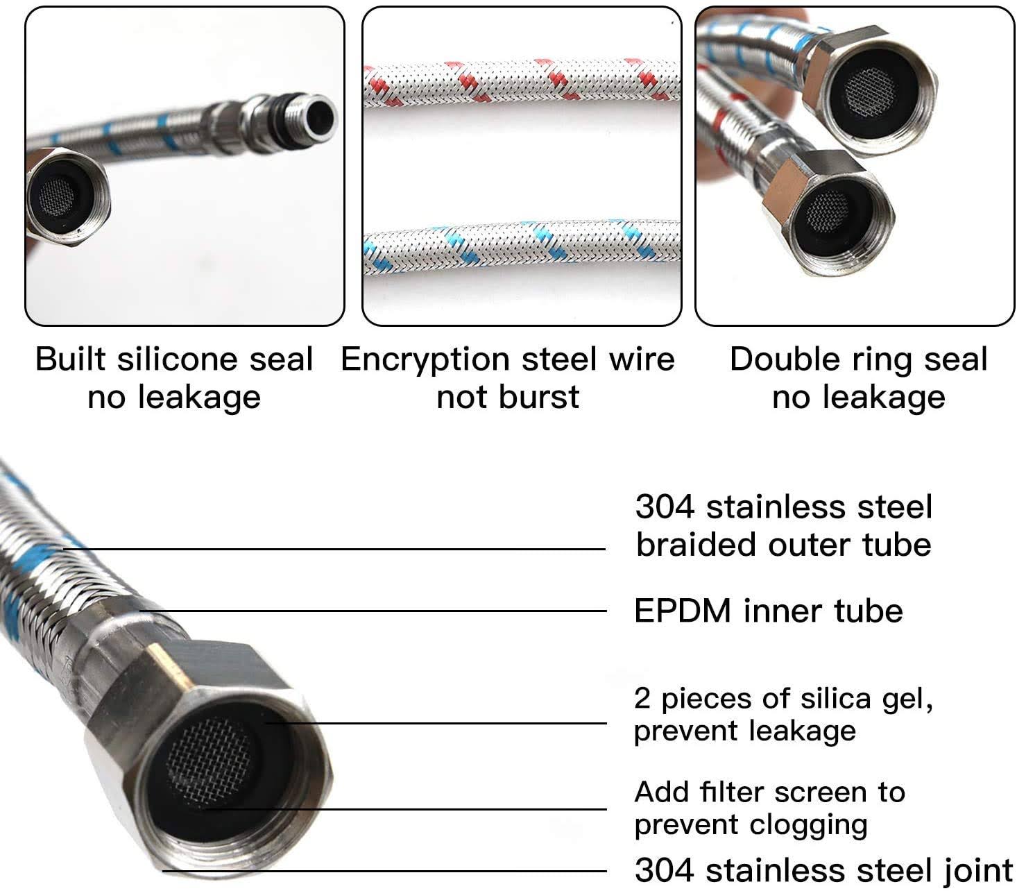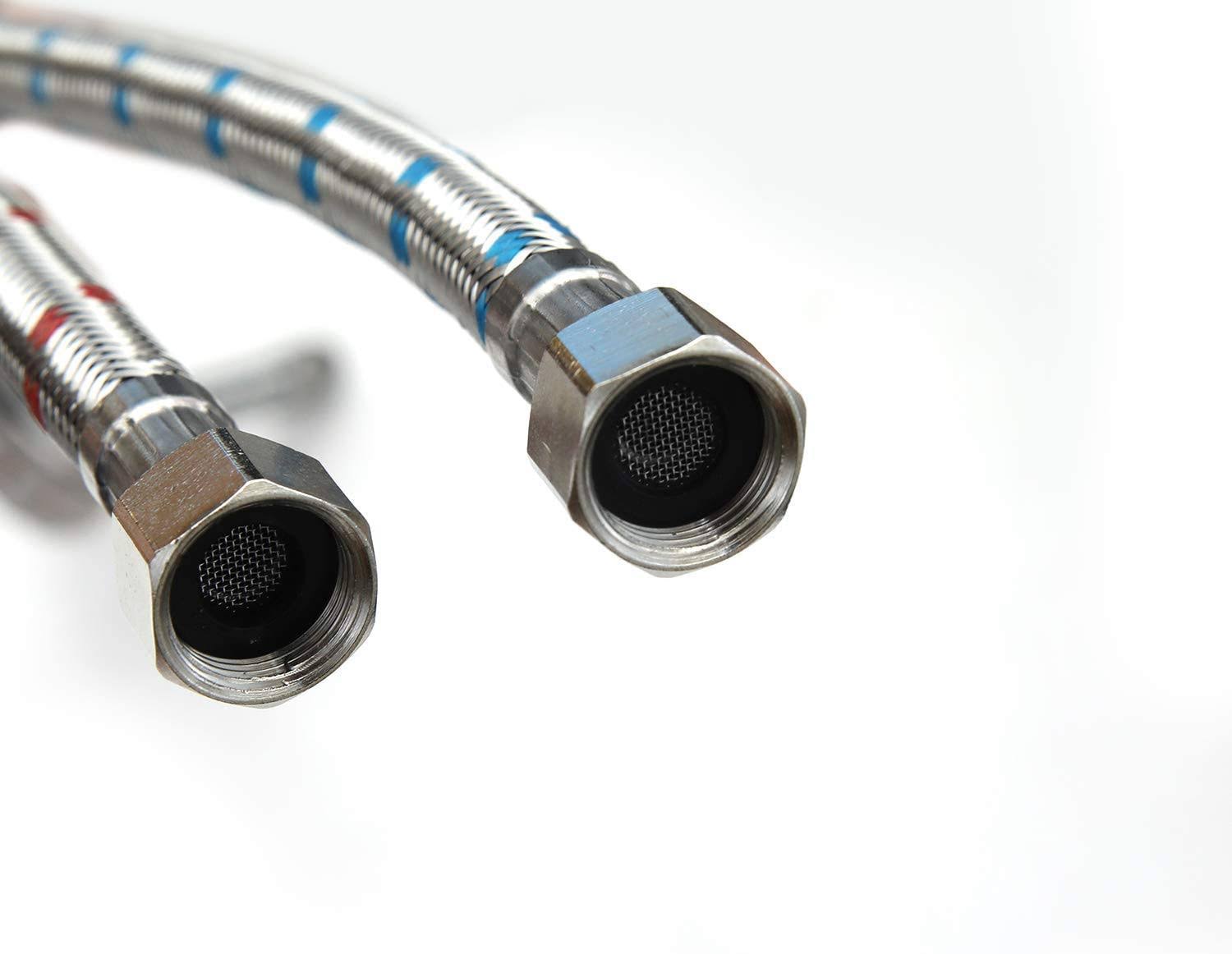 Homevacious 16-inch Long Bathroom Kitchen Faucet Connector Braided Supply Hose 3/8-Inch Female Compression Stainless Steel Sink Faucet Connection