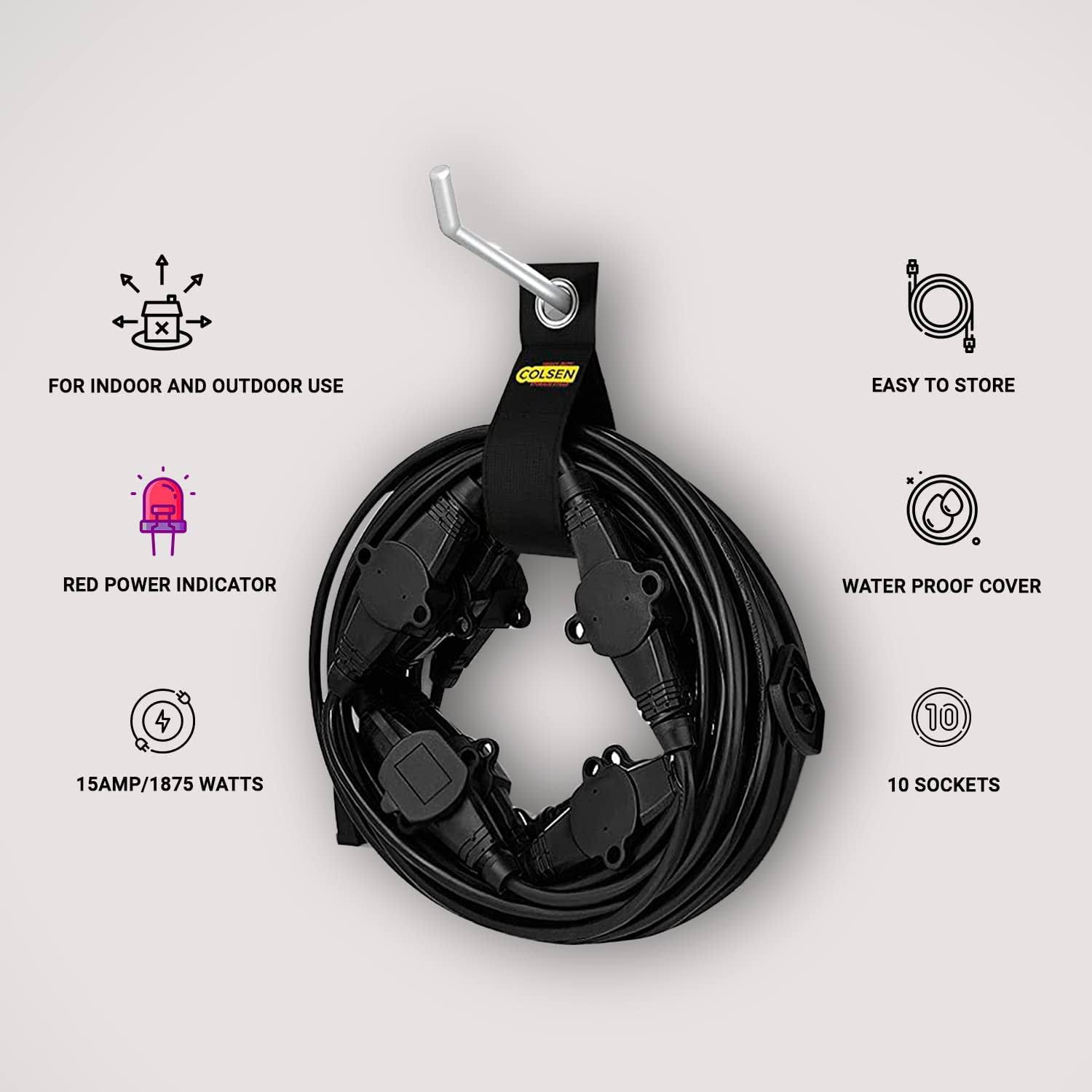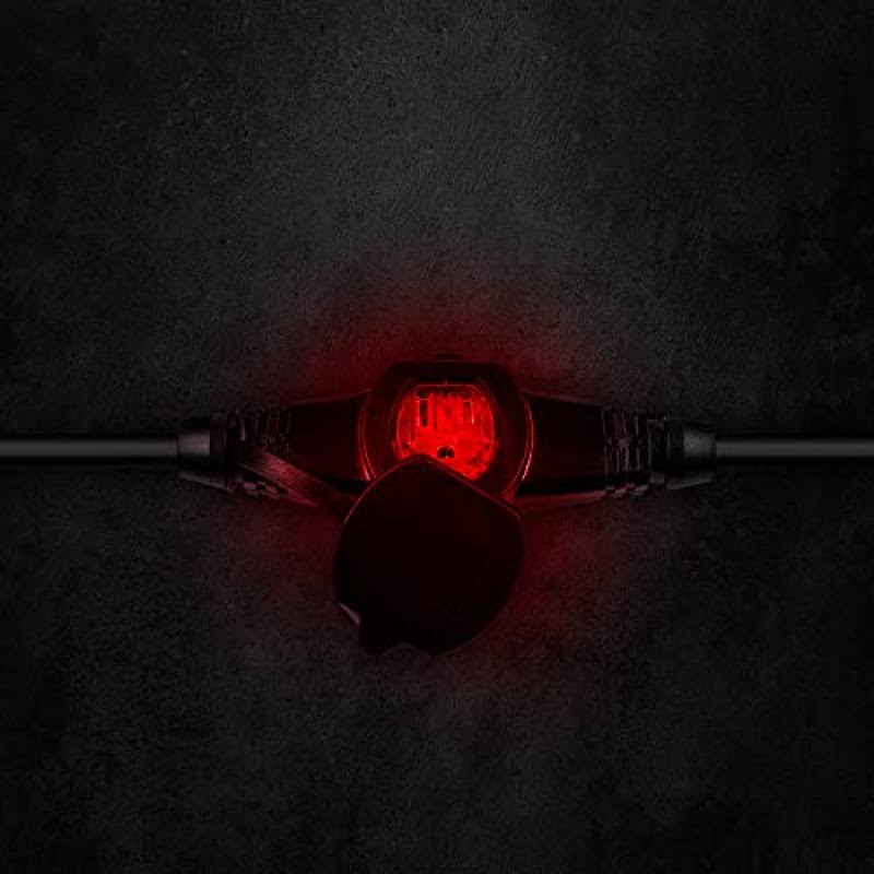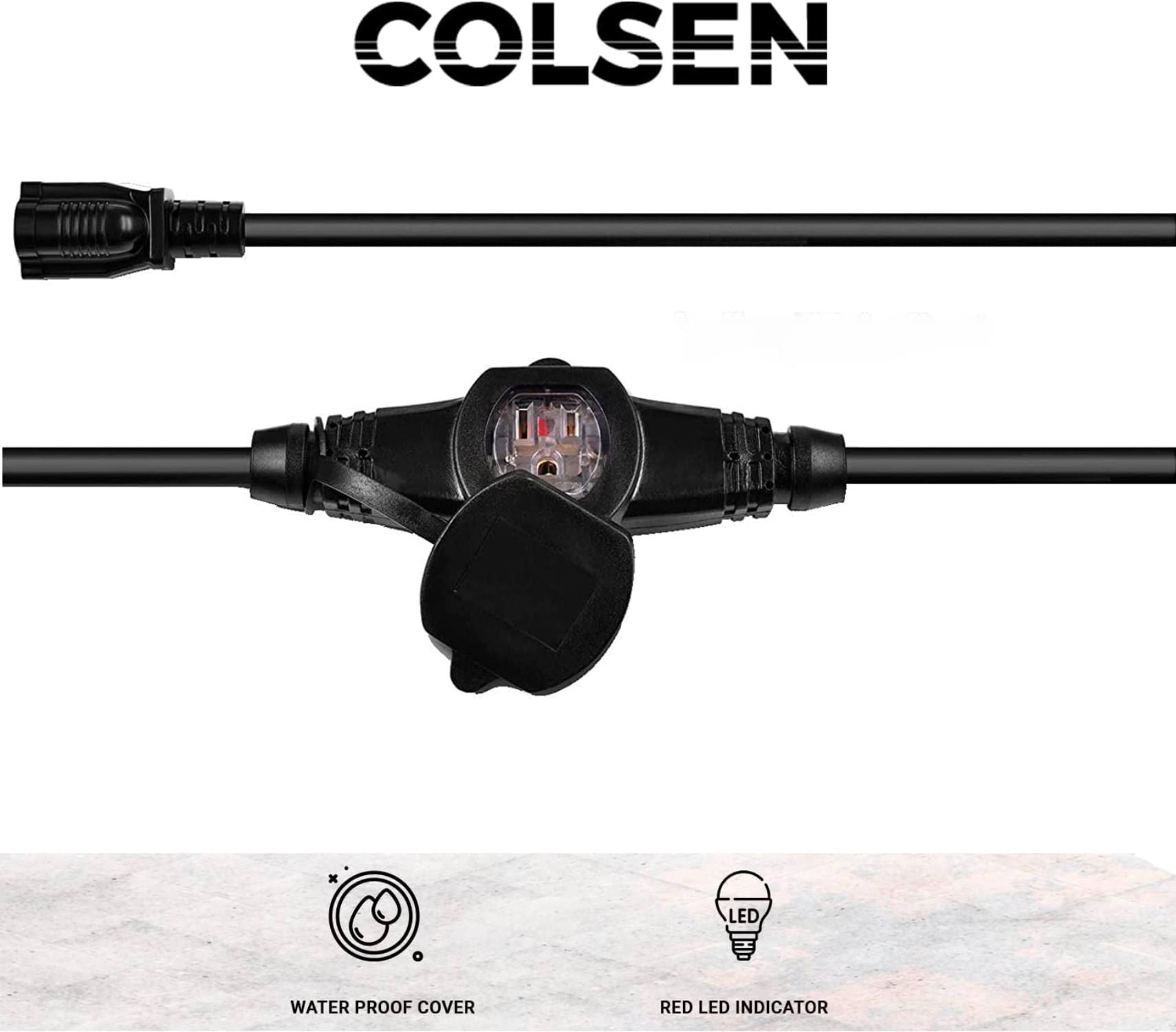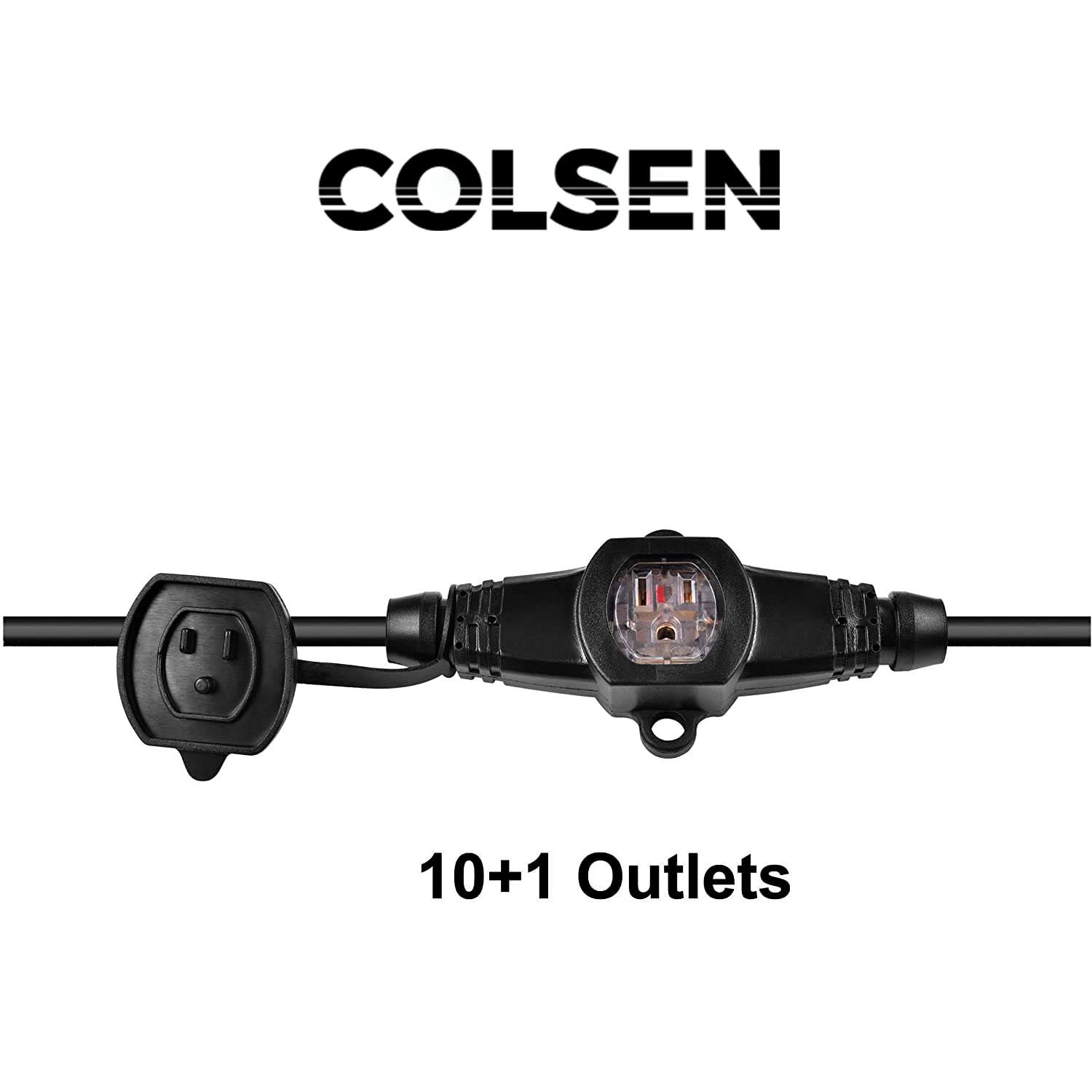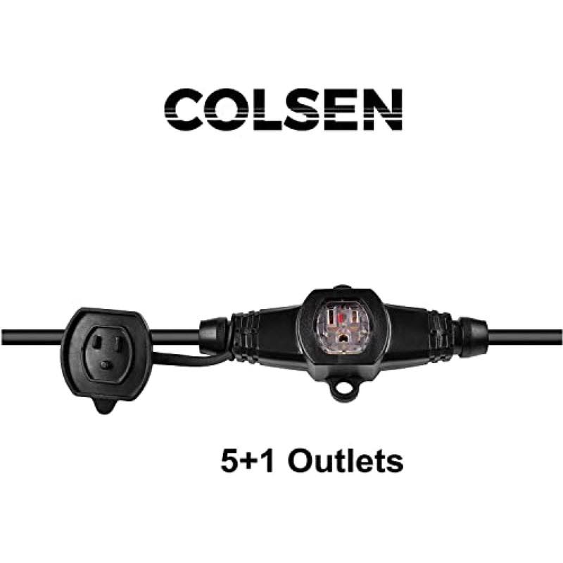 Colsen 25ft Power Extension Cord 3 Prong, 6 NEMA 5-15R Female Socket- Red LED Indicator, 16 Gauge SJTW Cable Male to Female Con