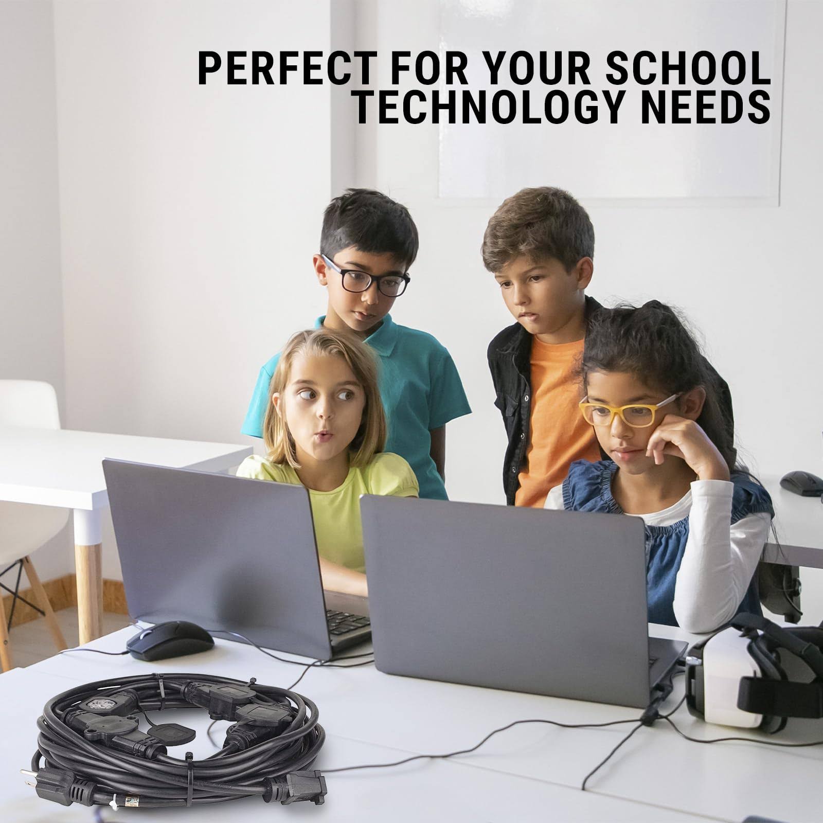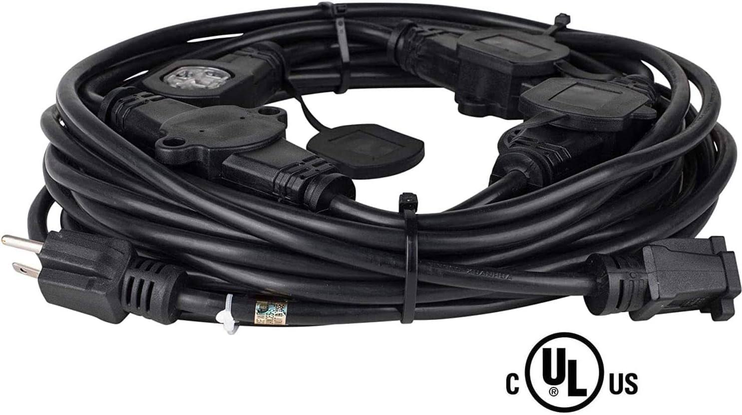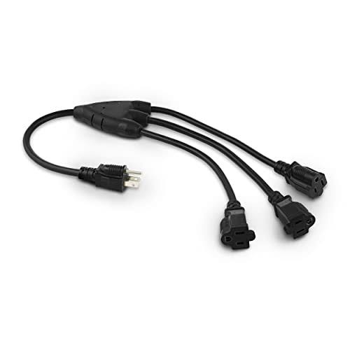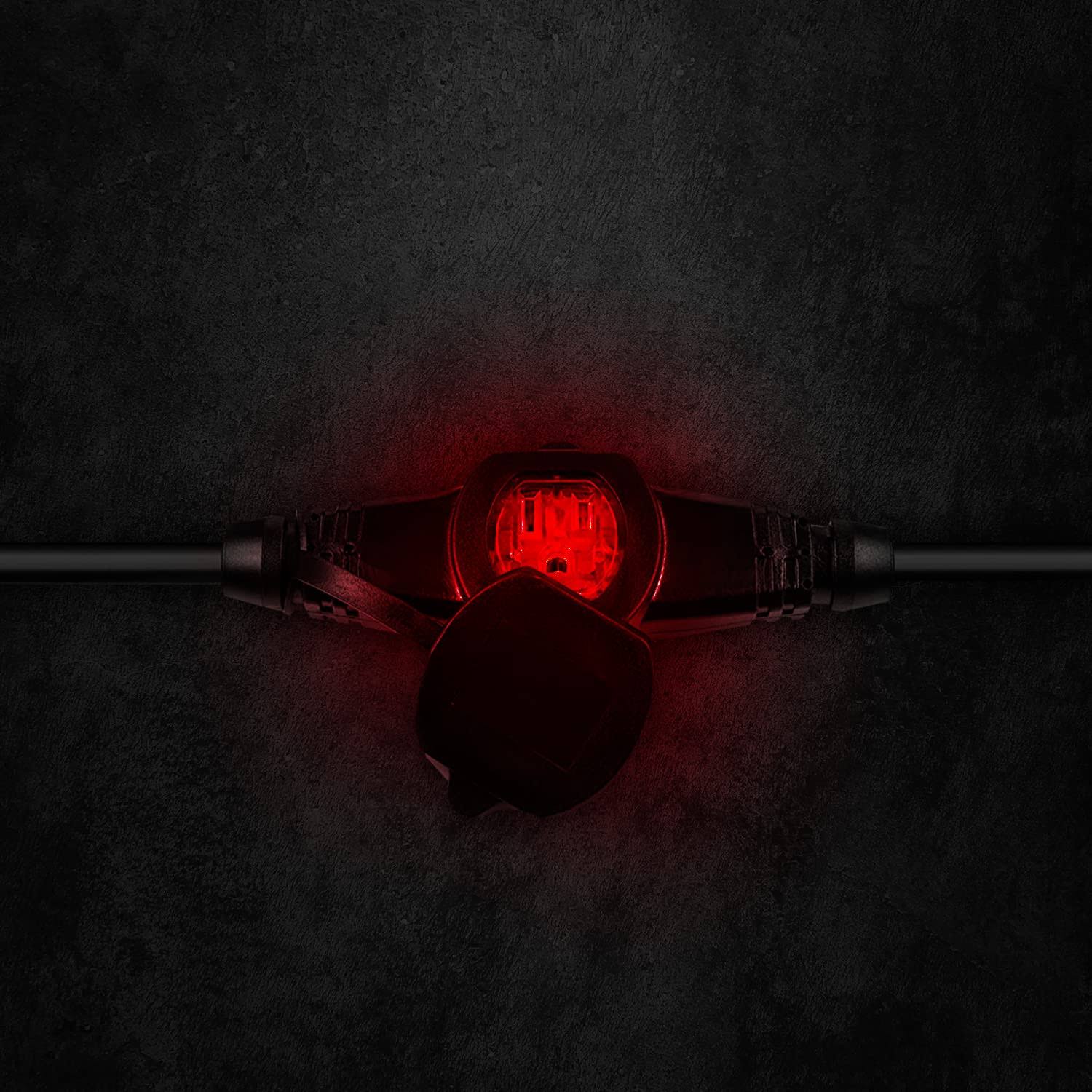Colsen 25ft Power Extension Cord 3 Prong, 6 NEMA 5-15R Female Socket- Red LED Indicator, 16 Gauge SJTW Cable Male to Female Con