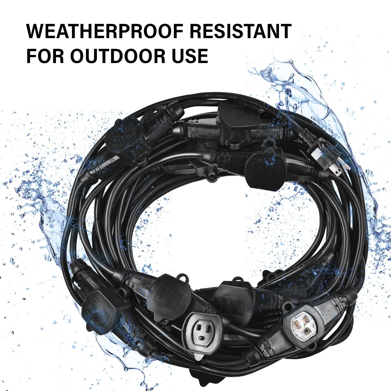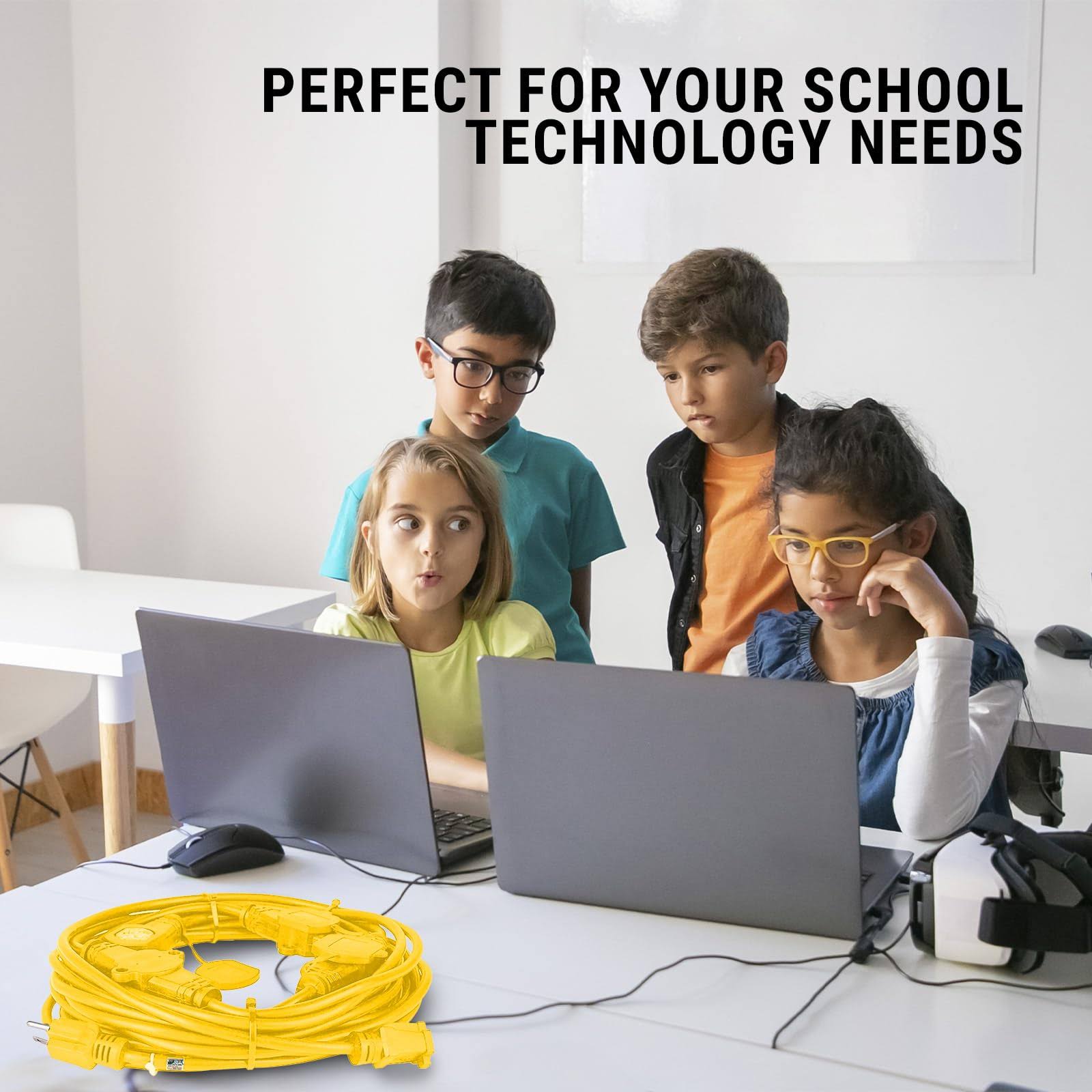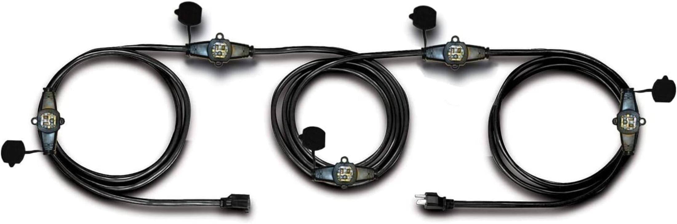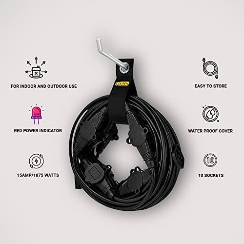 Colsen 50ft Yellow Power Extension Cord 3 Prong 6 NEMA 5-15R Female Socket- Red LED Indicator 14 Gauge SJTW Cable Male to Female Connector Stage