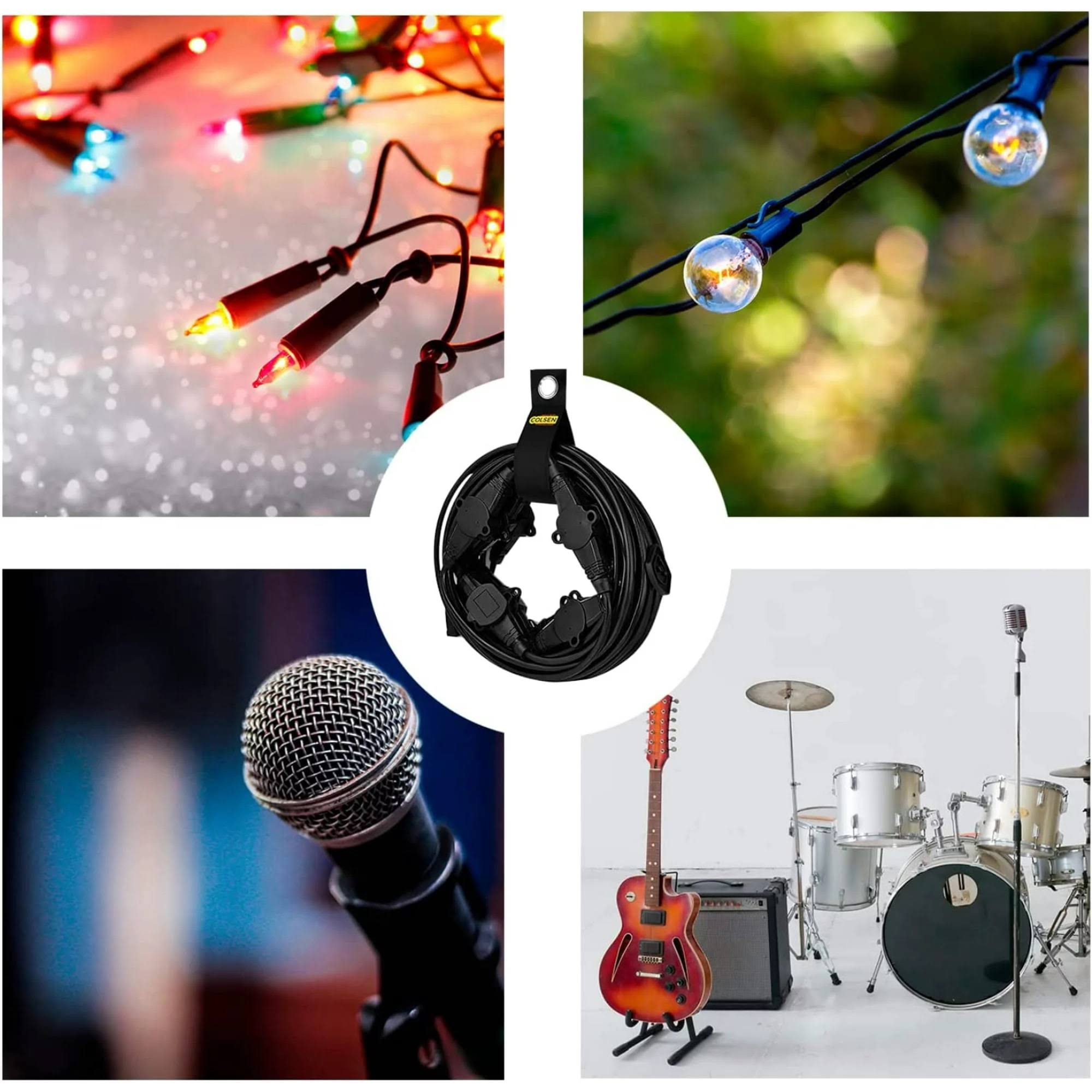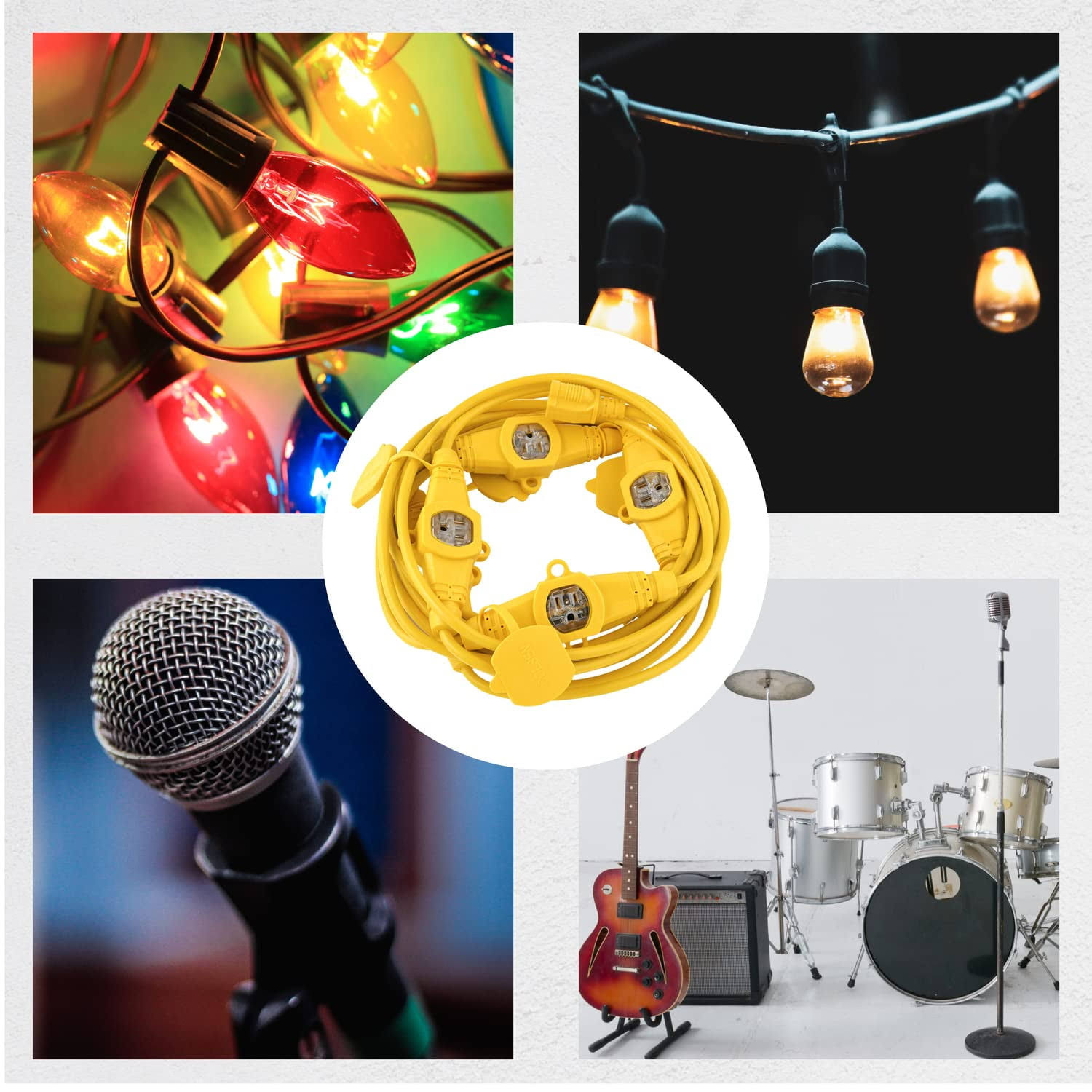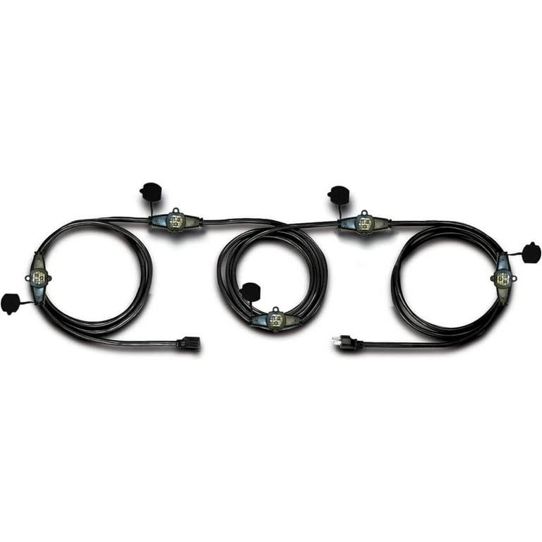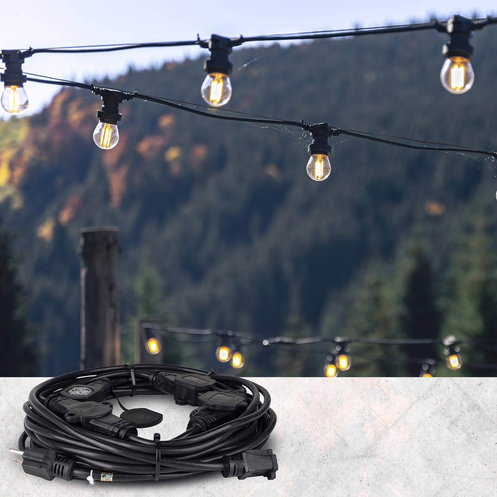Colsen 50ft Yellow Power Extension Cord 3 Prong 6 NEMA 5-15R Female Socket- Red LED Indicator 14 Gauge SJTW Cable Male to Female Connector Stage