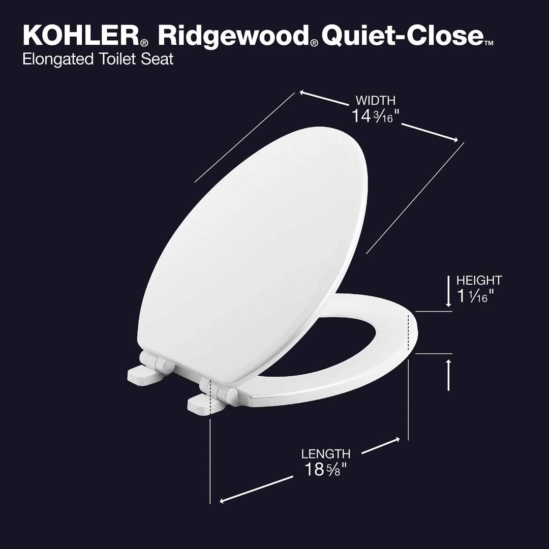 Kohler 20454-0 Ridgewood Quiet-Close Elongated Toilet Seat- White
