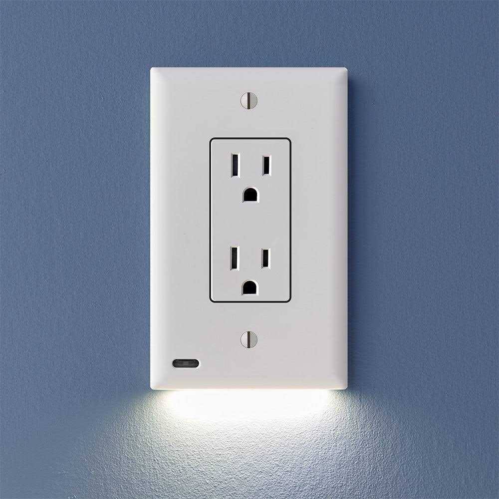 SnapPower O1GL-C-NP20 GuideLight 2 D��cor Night Light Outlet Cover Plate Black Wall Controls Wall Plates Outlet Plates