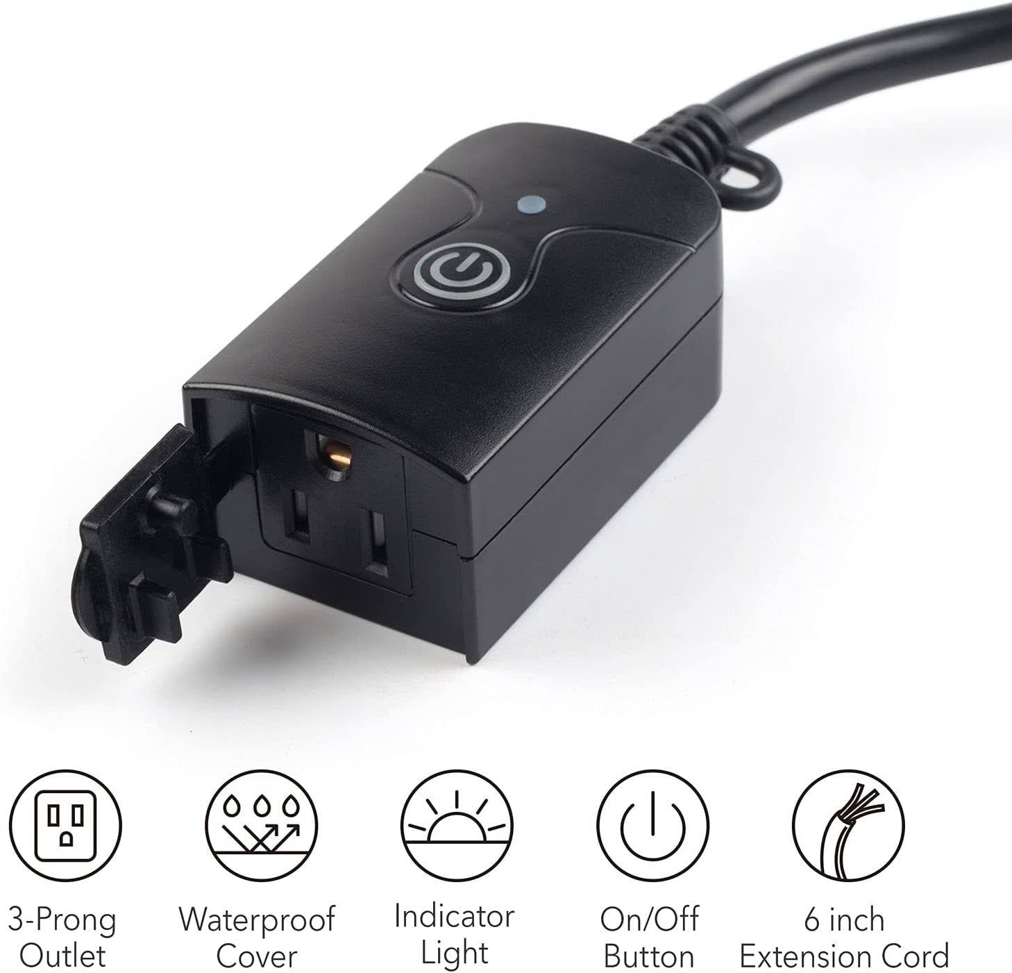 HBN Outdoor Indoor Wireless Remote Control 3-Prong Outlet Weatherproof