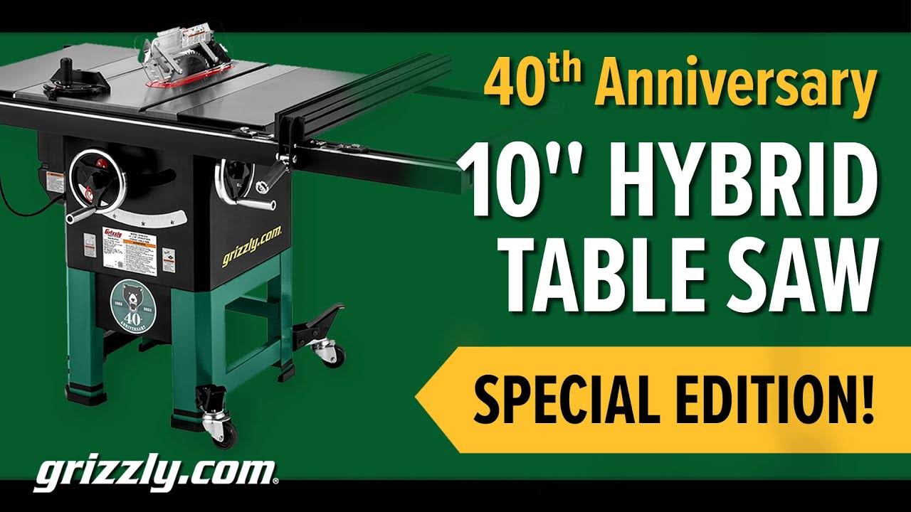 Grizzly G0962A40- 10" 2 HP Open-Stand Hybrid Table Saw- 40th Anniversary Edition