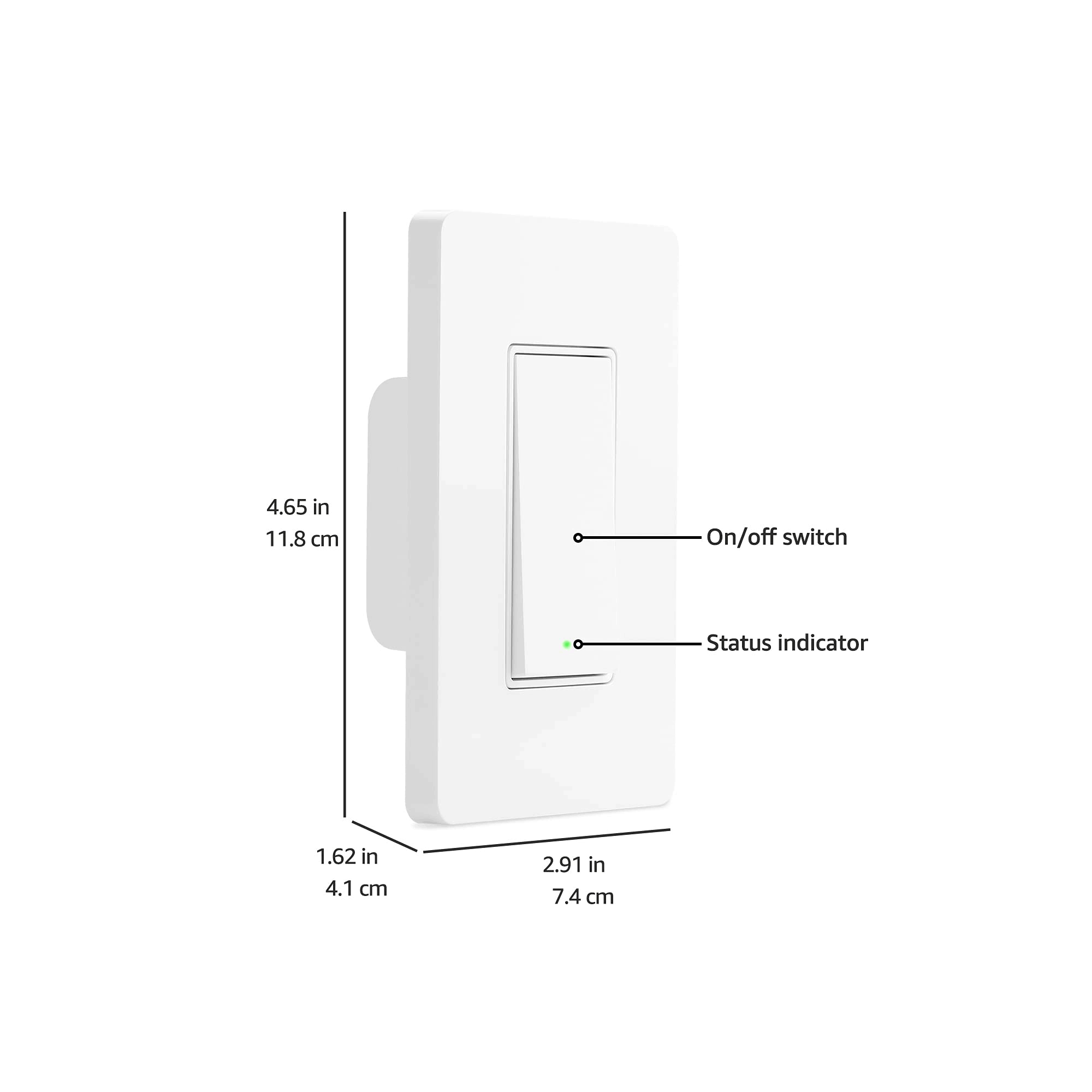 Amazon Basics Single Pole Smart Switch, Neutral Wire Required, 2.4 GHz Wifi, Works with Alexa