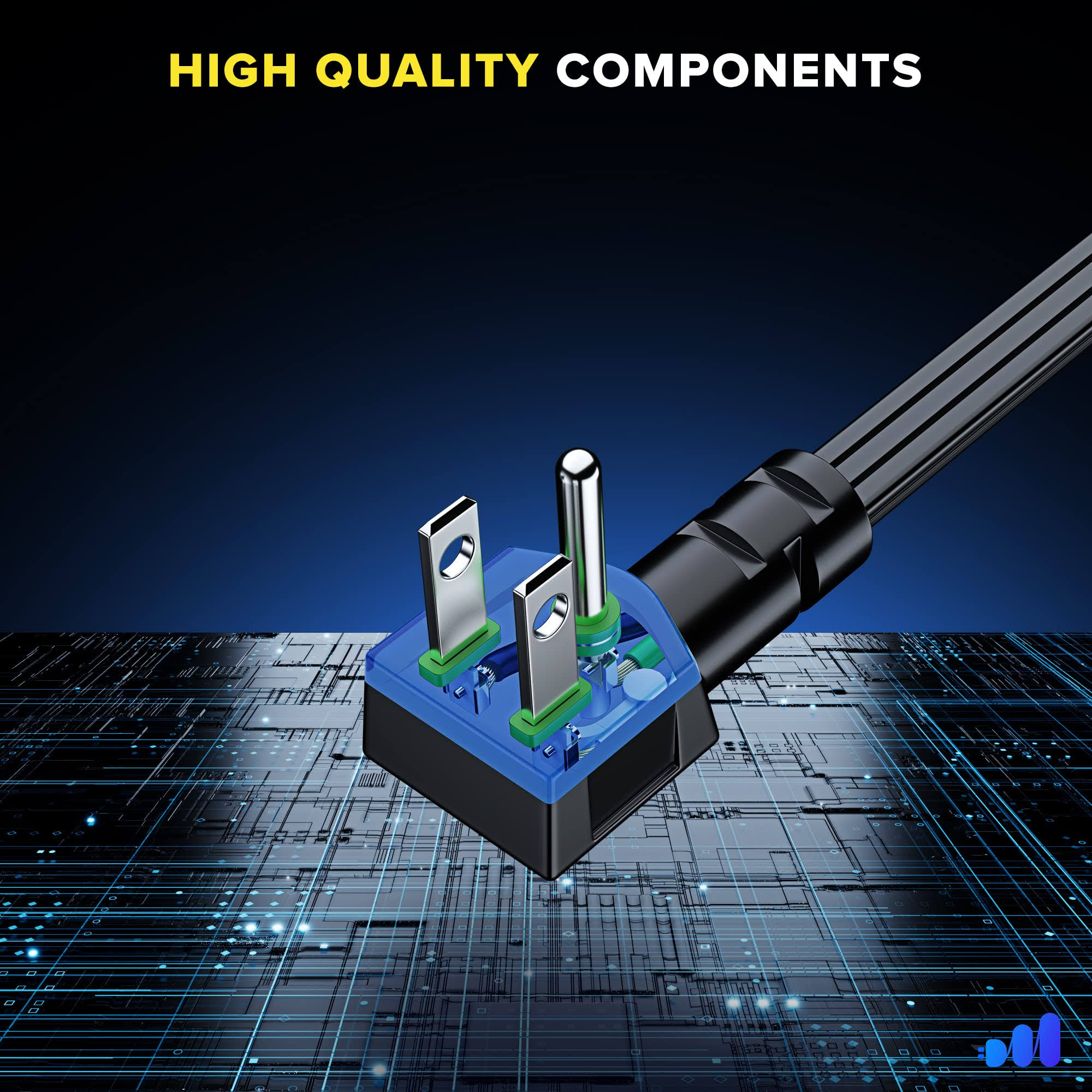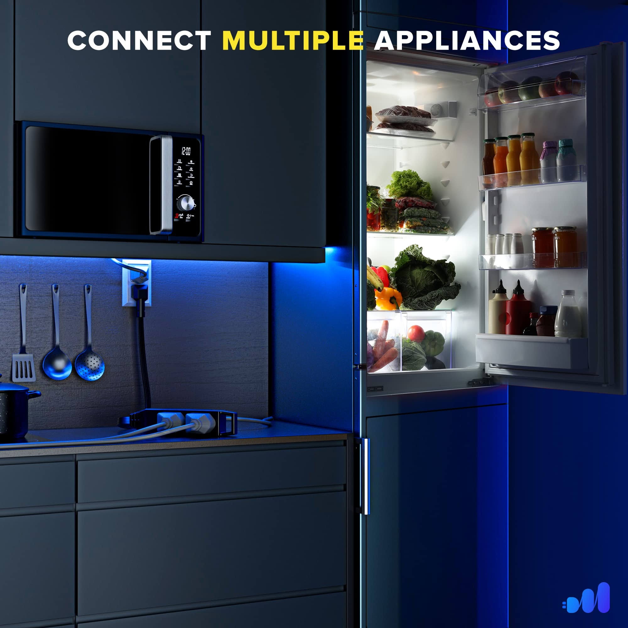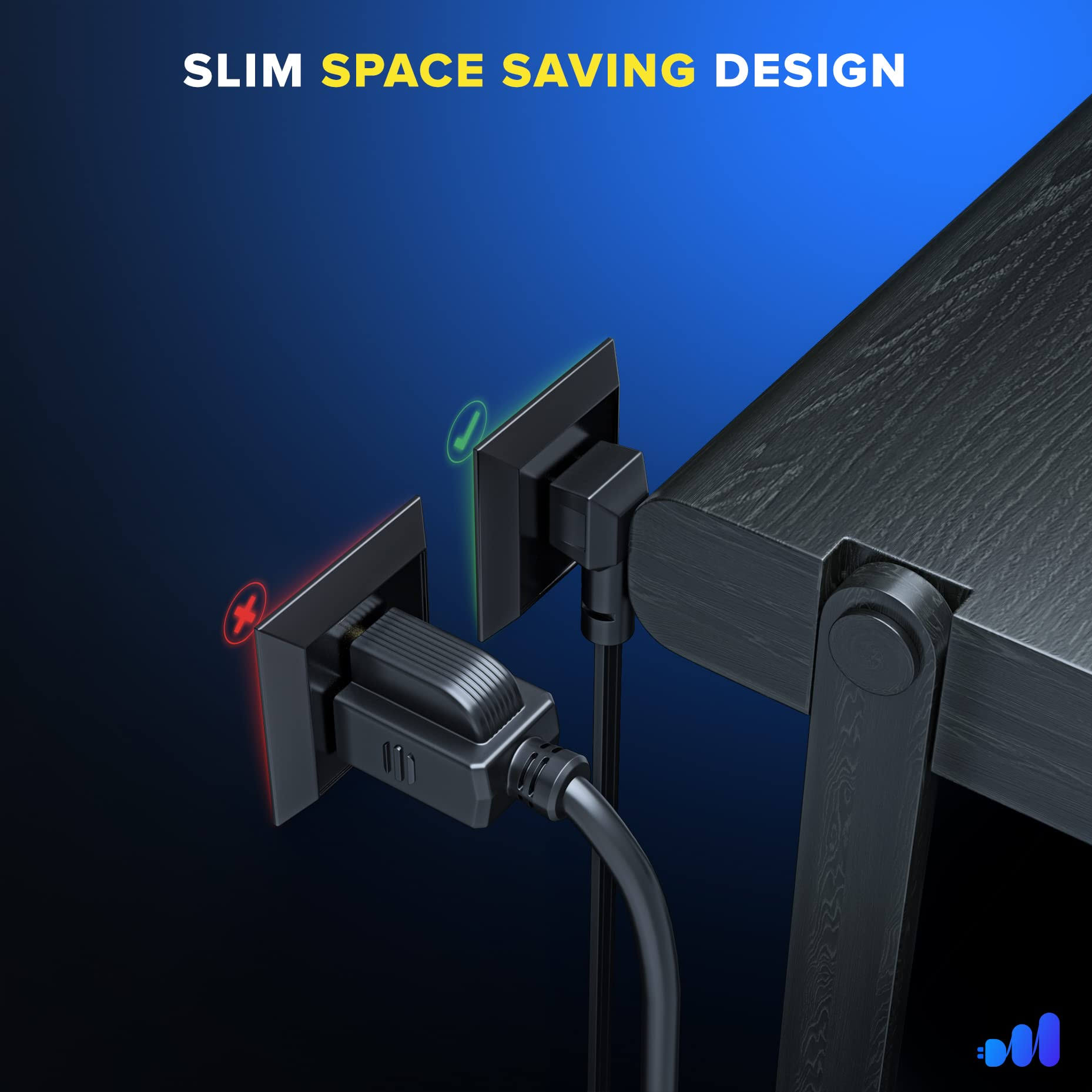 Maximm Extension Cord with Multiple Outlets 2 ft, with Thin Space-Saving Flat Wire Design, Black, 16 Gauge, Flat Extension Cord Under Carpet ETL