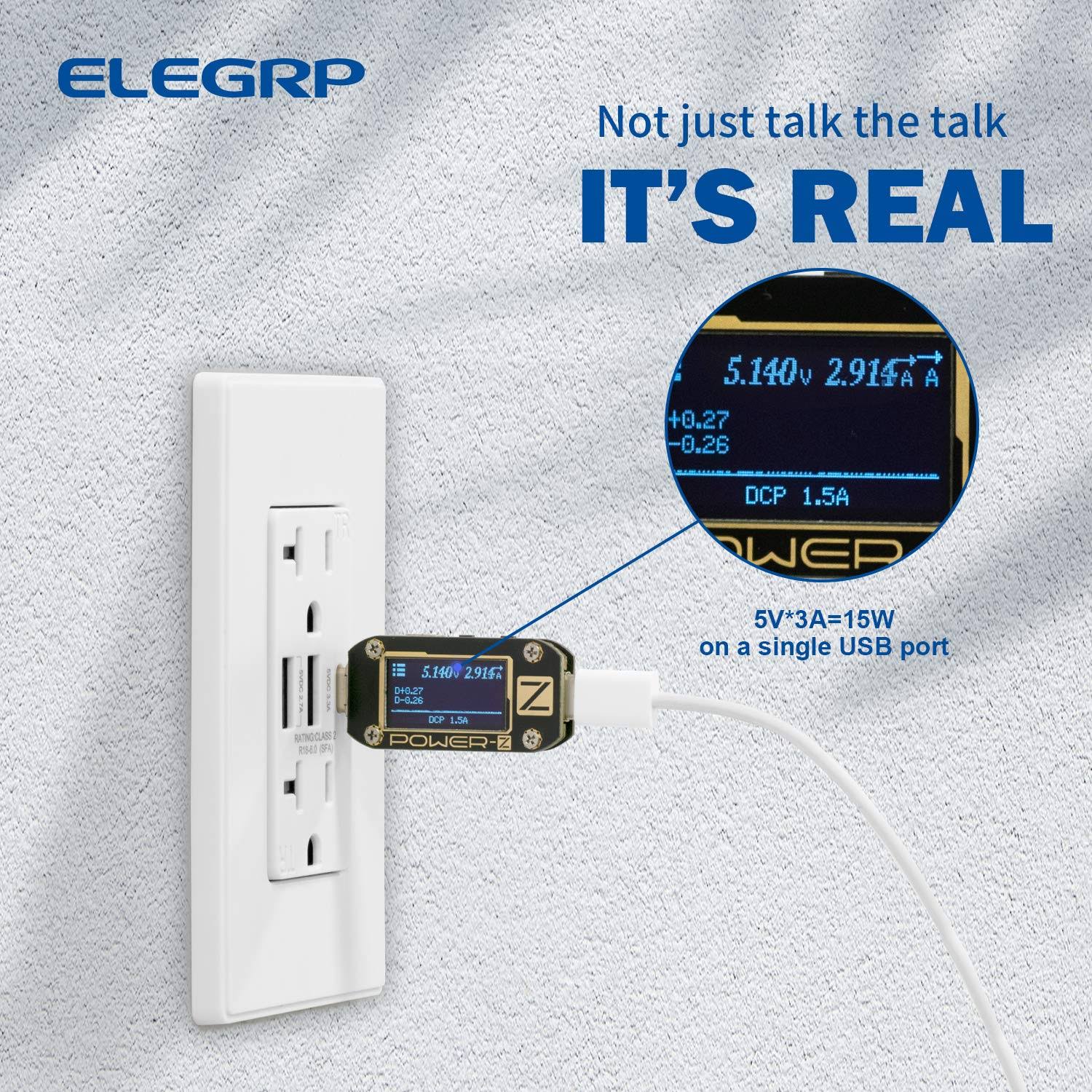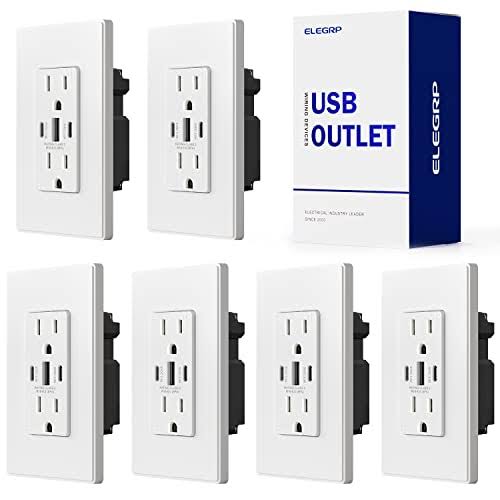 ELEGRP USB Outlets, 30W 6.0 Amp USB C Outlets Receptacles, 3-Port USB Wall Outlet, 15 Amp Tamper-Resistant Outlet with 2 USB C P, White