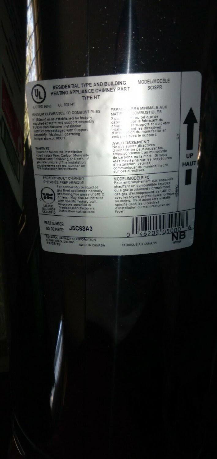 Supervent jsc6sa3 6-in x 36-in Insulated Double Wall Stainless Steel Chimney Pipe