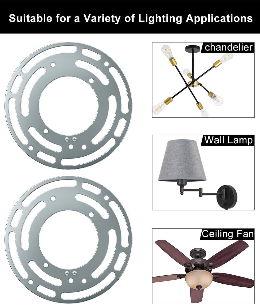 QC 2 Pack Universal Light Fixture Mounting Bracket, 4 Inches Diameter Steel Crossbar Plate with Ground Screw for Mount Wall Light, Close to Ceiling