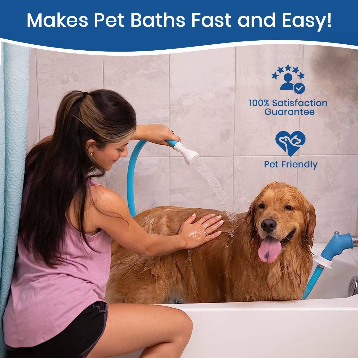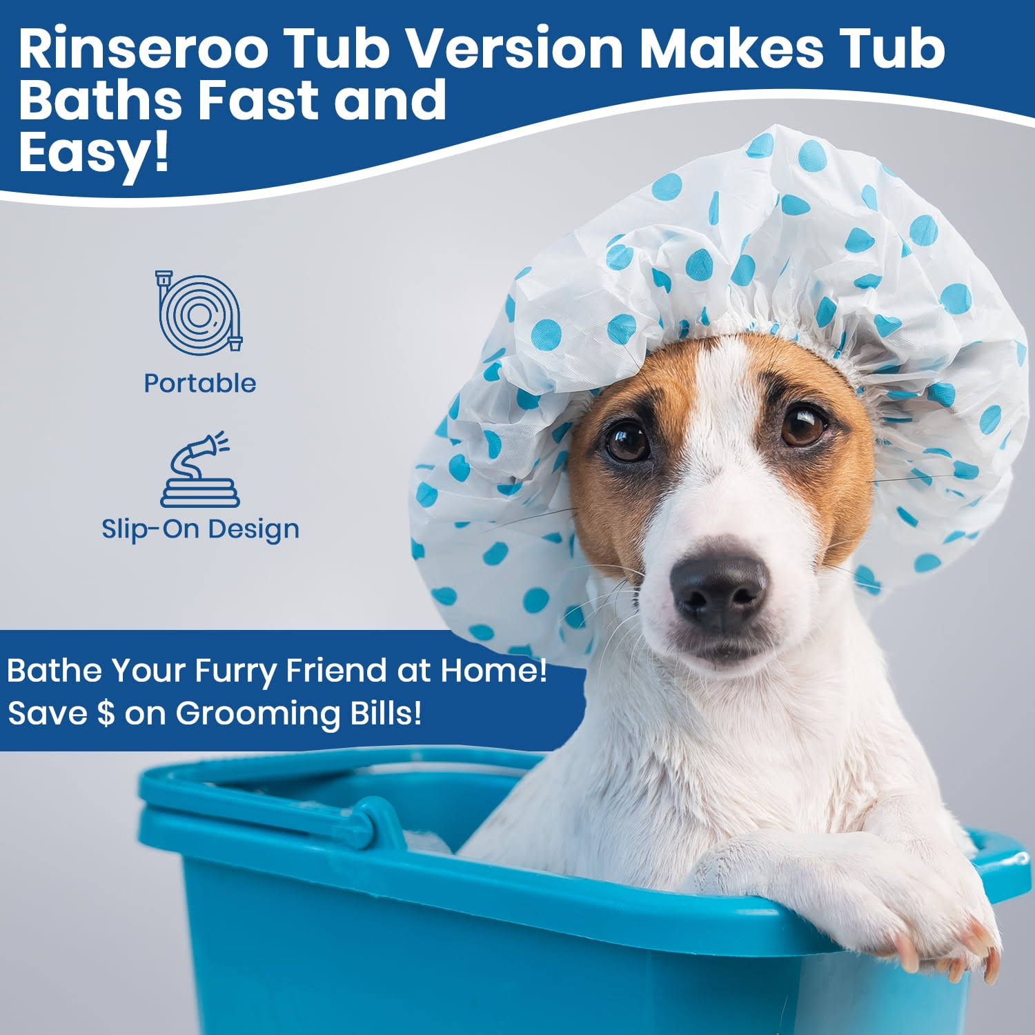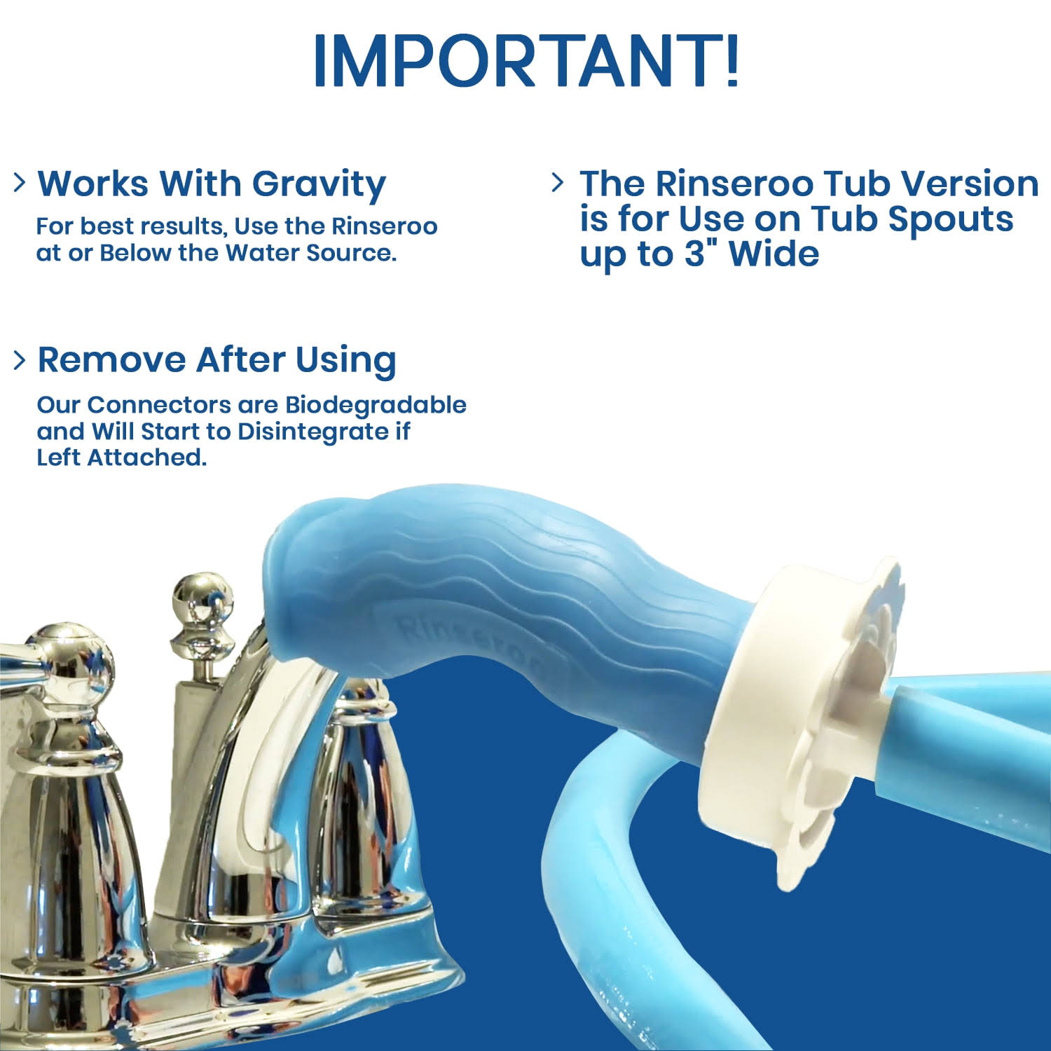 Rinseroo Bathtub Faucet Sprayer ATTACHMENT. Slip-On Dog Shower Hose Adapter. No-Install Pet Showerhead Attaches to Tub Spout 5 Foot Hose 727574