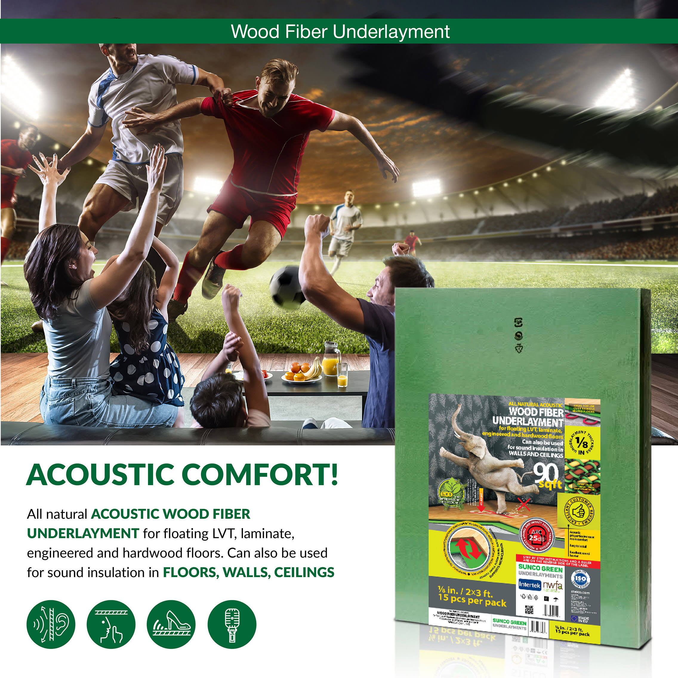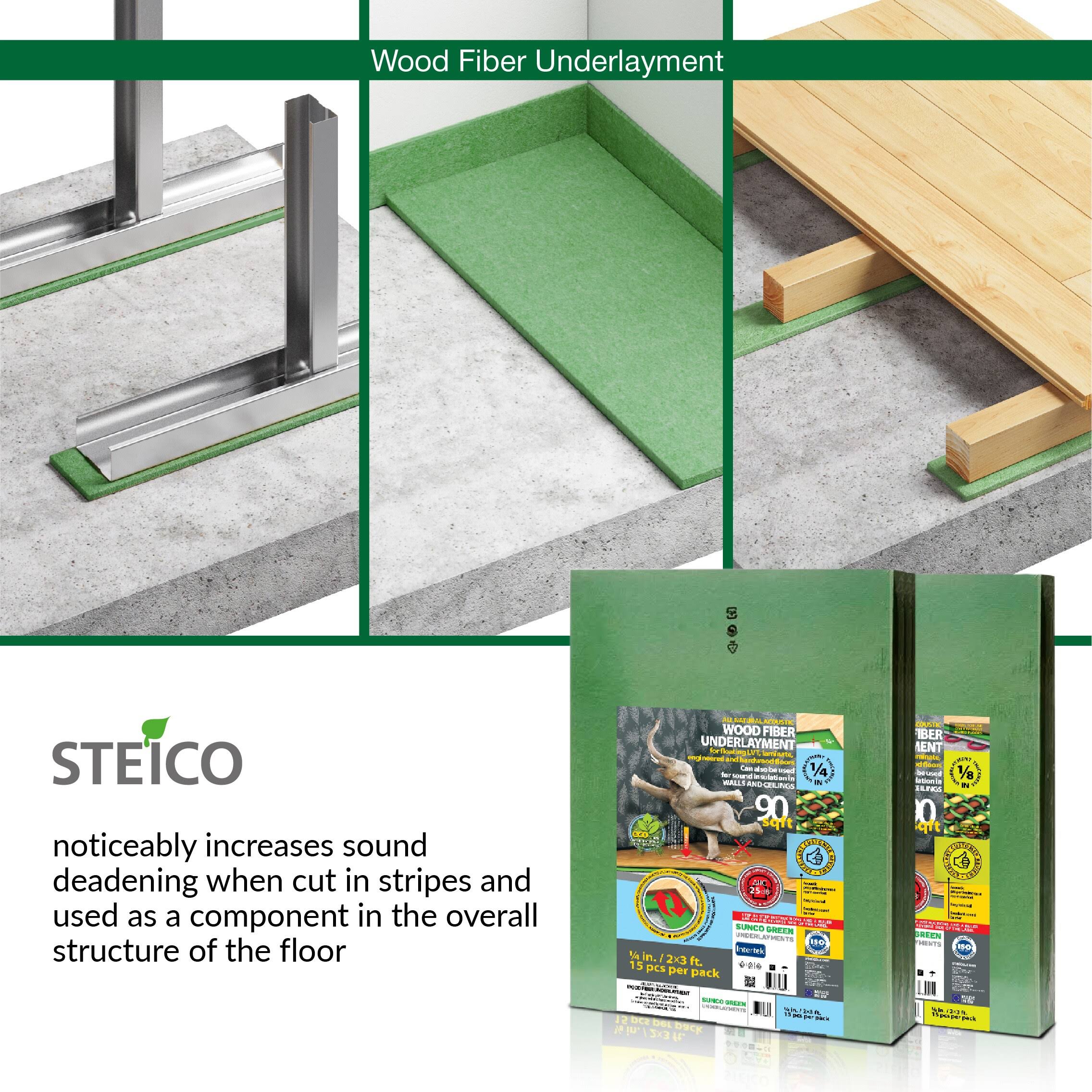 STEICO 3 mm 1/8 inch Wood Fiber Flooring Underlayment for Laminate Vinyl LVT LVP Hardwood Floor 90 Sqft Natural Sound Insulation
