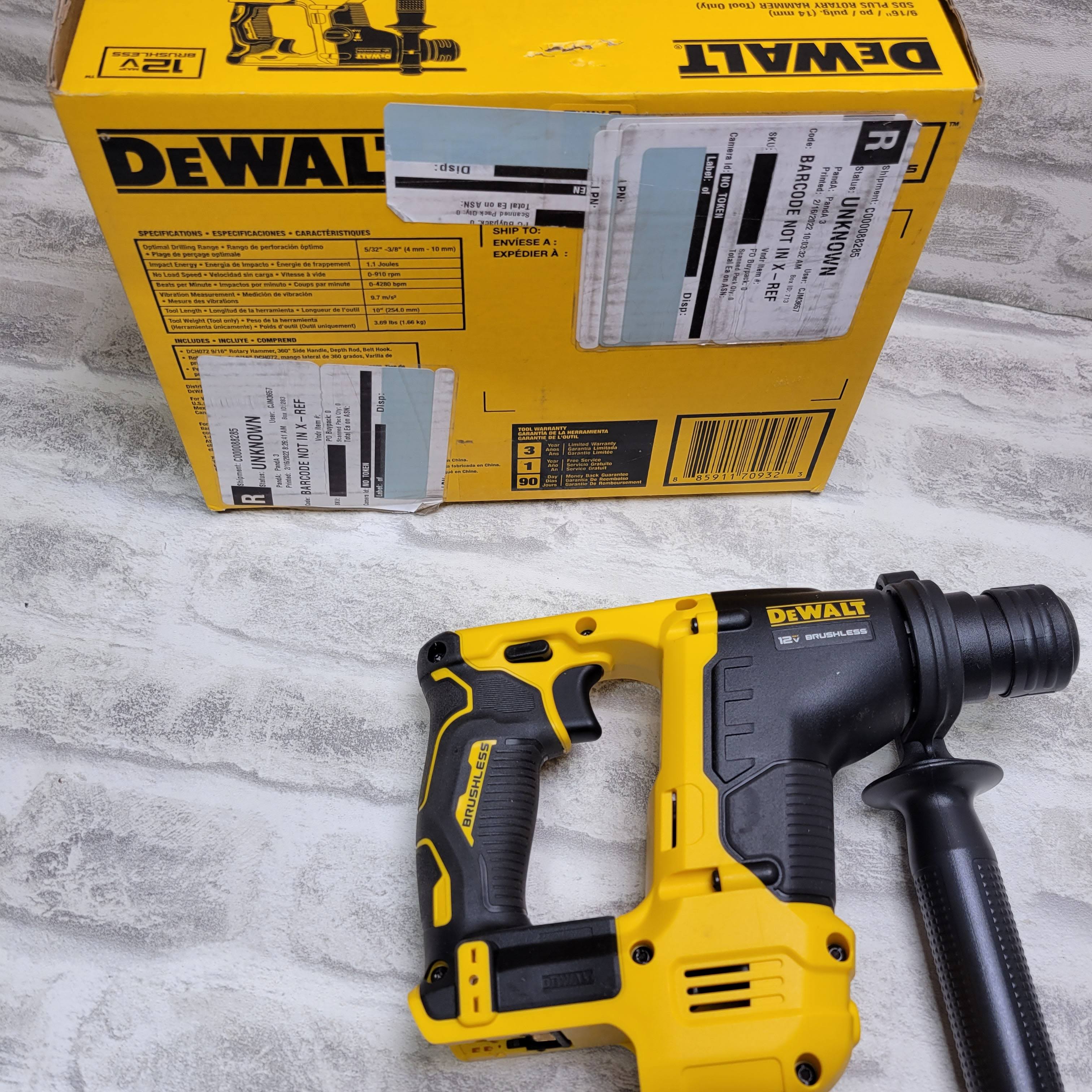 DeWalt DCH072B Xtreme 12V Max Brushless 9/16-In. SDS Plus Rotary Hammer, Tool Only