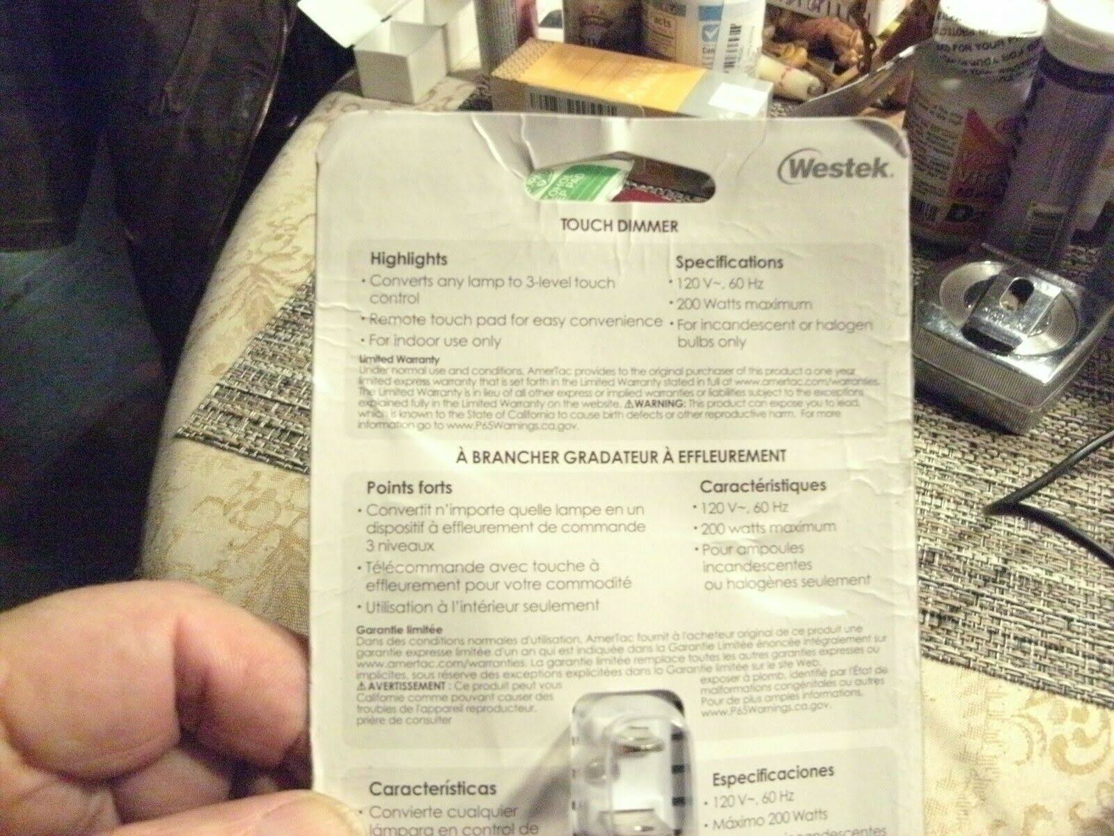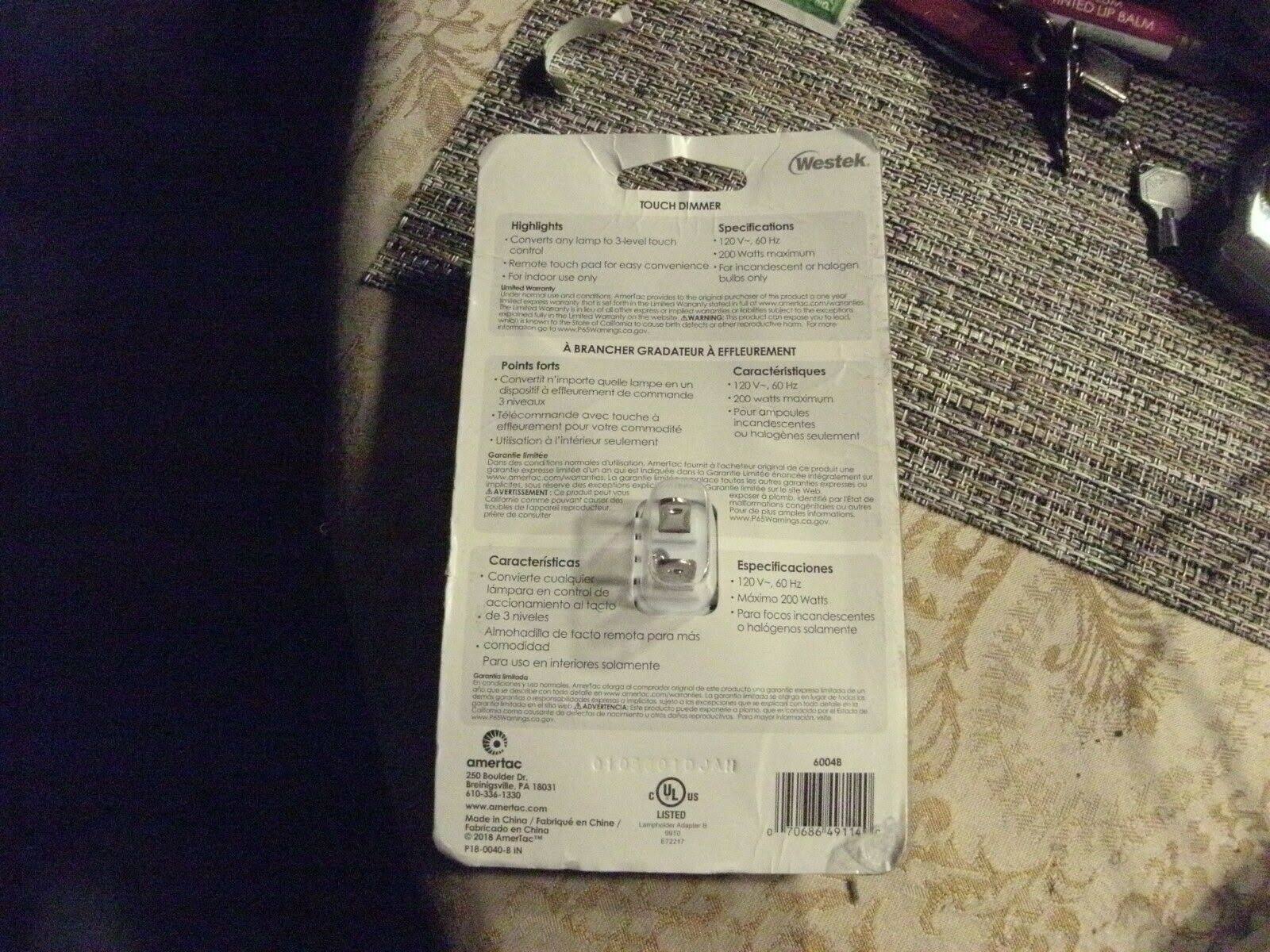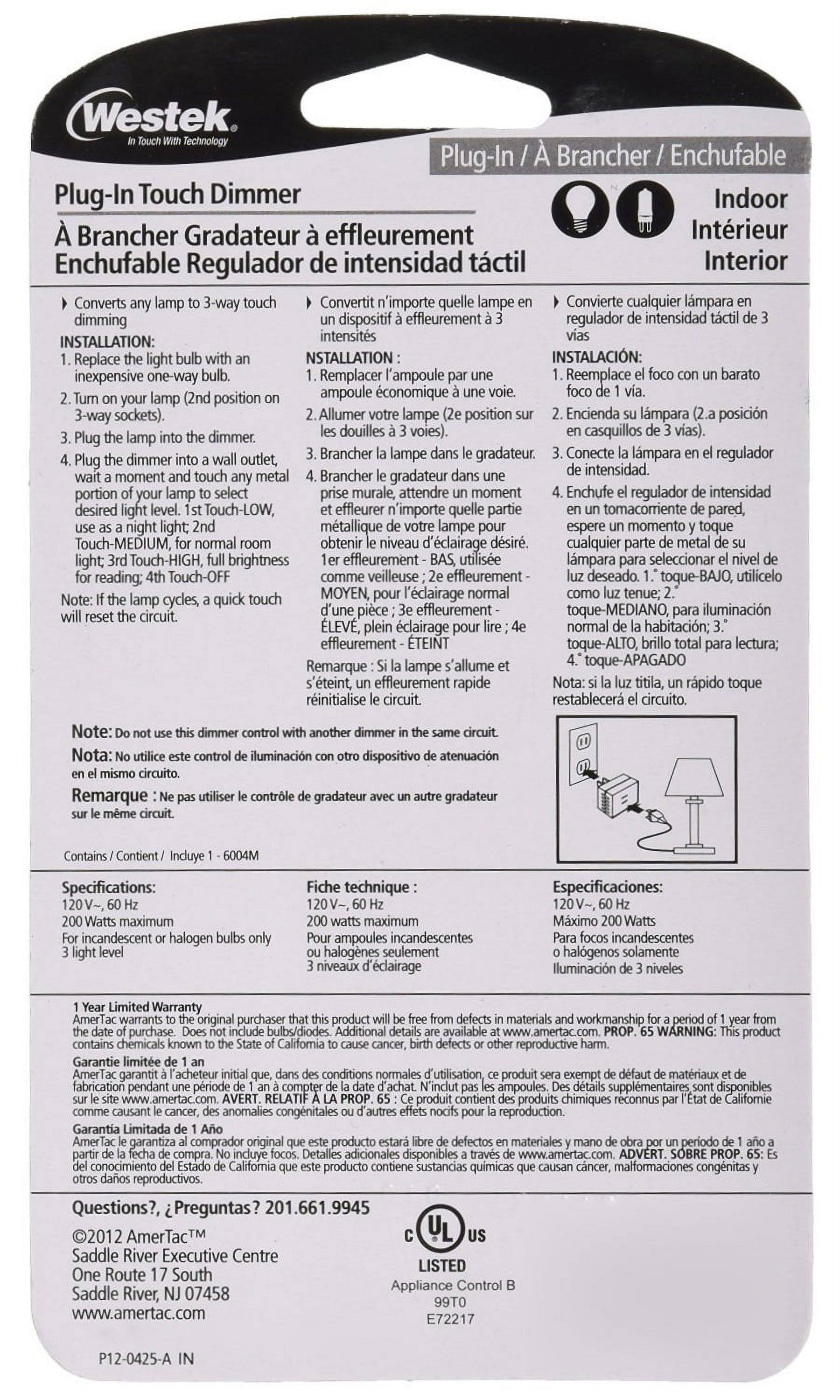 Westek 6004b 200W 3-Level Touch Lamp Plug-In Dimmer, White (6)
