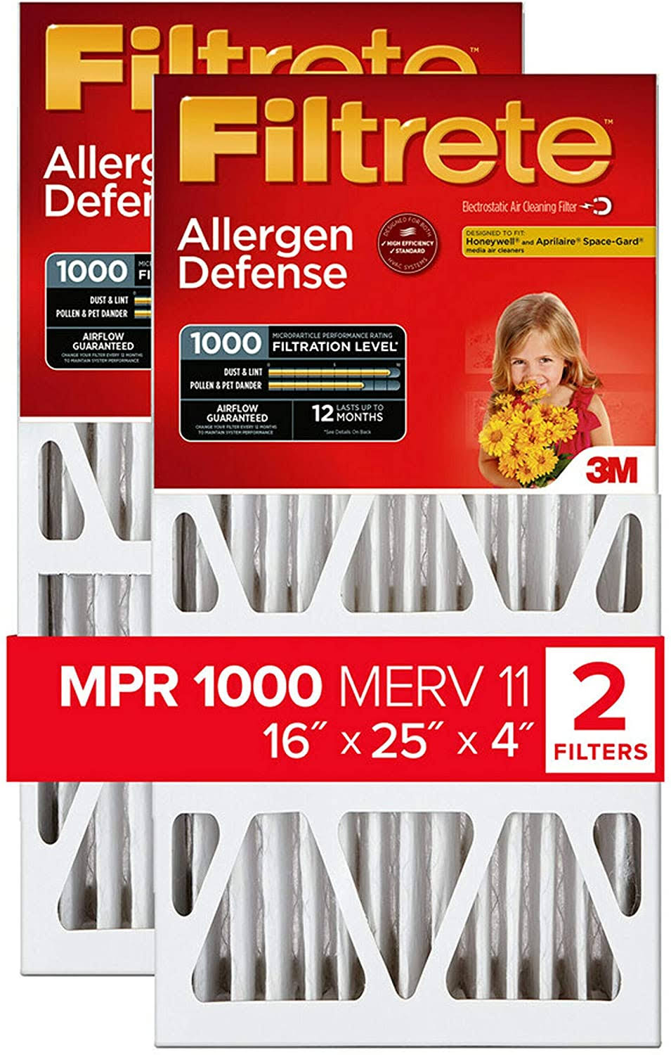 Filtrete 16x25x4 Air Filter, MPR 1000, MERV 11, Allergen Defense 12-Month Deep Pleated 4-Inch Air Filters, 4 Filters