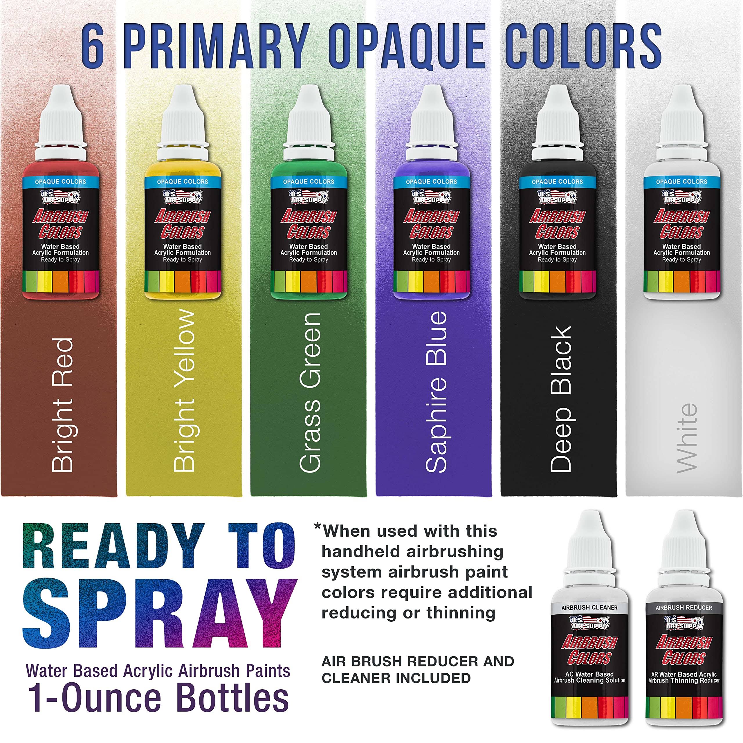 Master Airbrush Powerful Cordless Handheld Acrylic Paint Airbrushing System with 6 Primary Opaque Paint Colors, Reducer & Cleaner Kit- 20 to 36 PSI