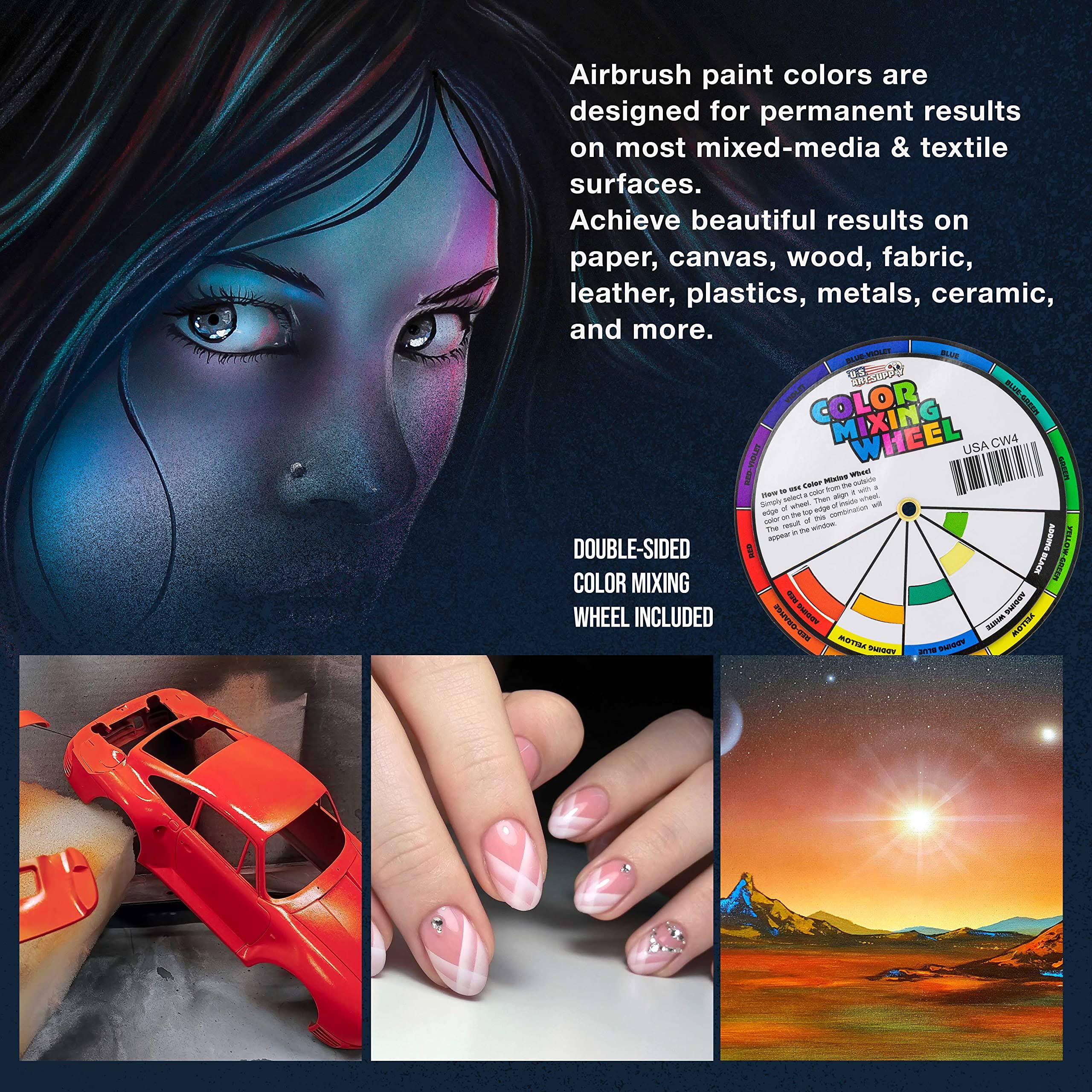 Master Airbrush Powerful Cordless Handheld Acrylic Paint Airbrushing System with 12 Primary Opaque Paint Colors, Reducer Cleaner Kit- 20 to 36 psi, R