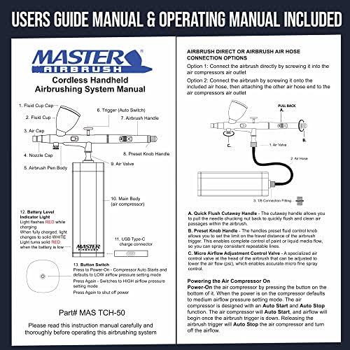 Master Airbrush Powerful Cordless Handheld Acrylic Paint Airbrushing System with 24 Opaque Paint Colors, Reducer & Cleaner Kit- 20 to 36 psi,
