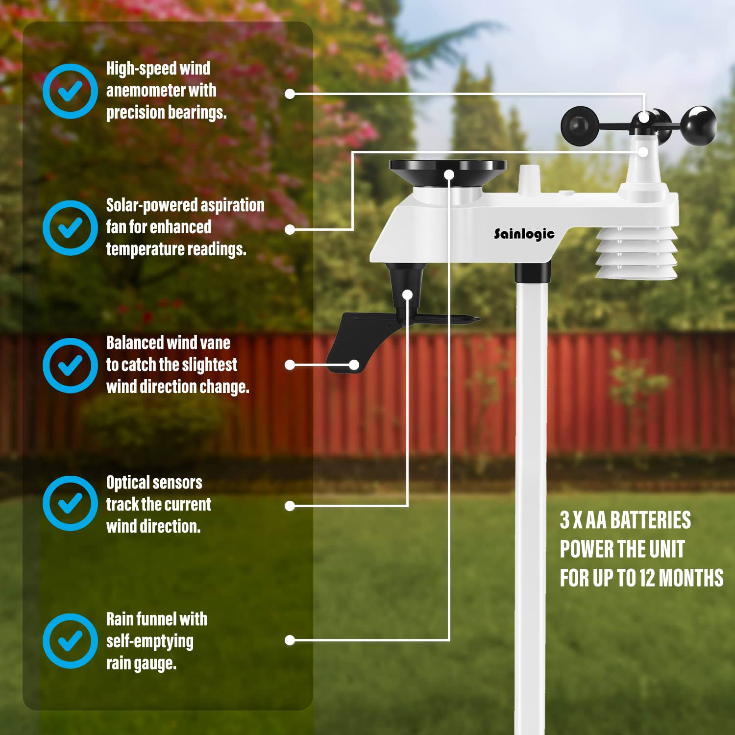 Sainlogic Wireless Weather Station with Outdoor Sensor, 8-in-1 Weather Station with Weather Forecast, Temperature, Air Pressure, Humidity, Wind