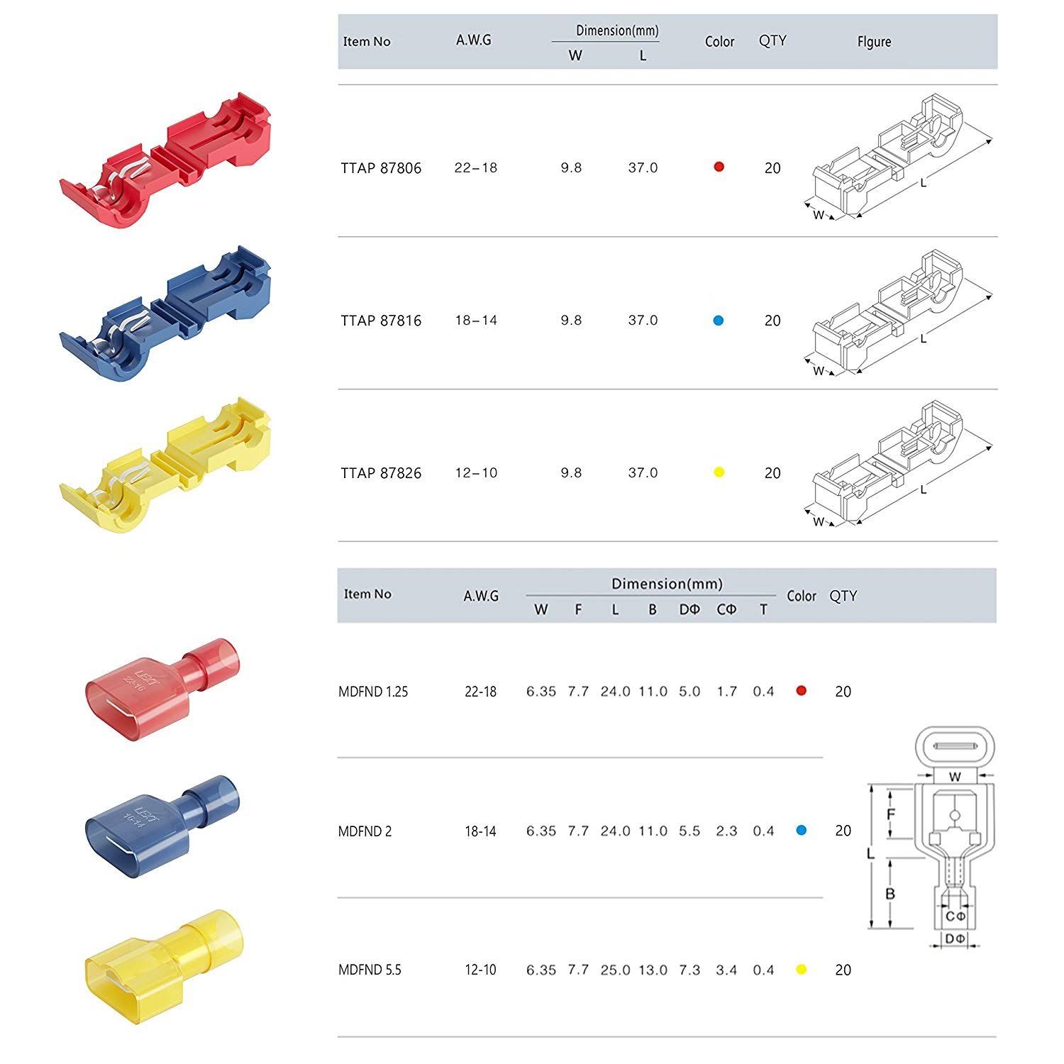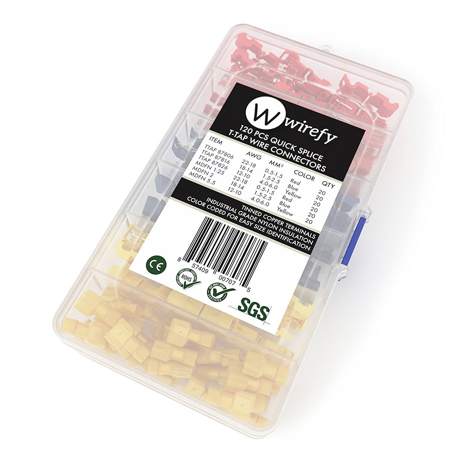 120 Pcs Wirefy T Tap Electrical Connectors- Quick Wire Splice Taps and Insulated Male Quick Disconnect Terminals