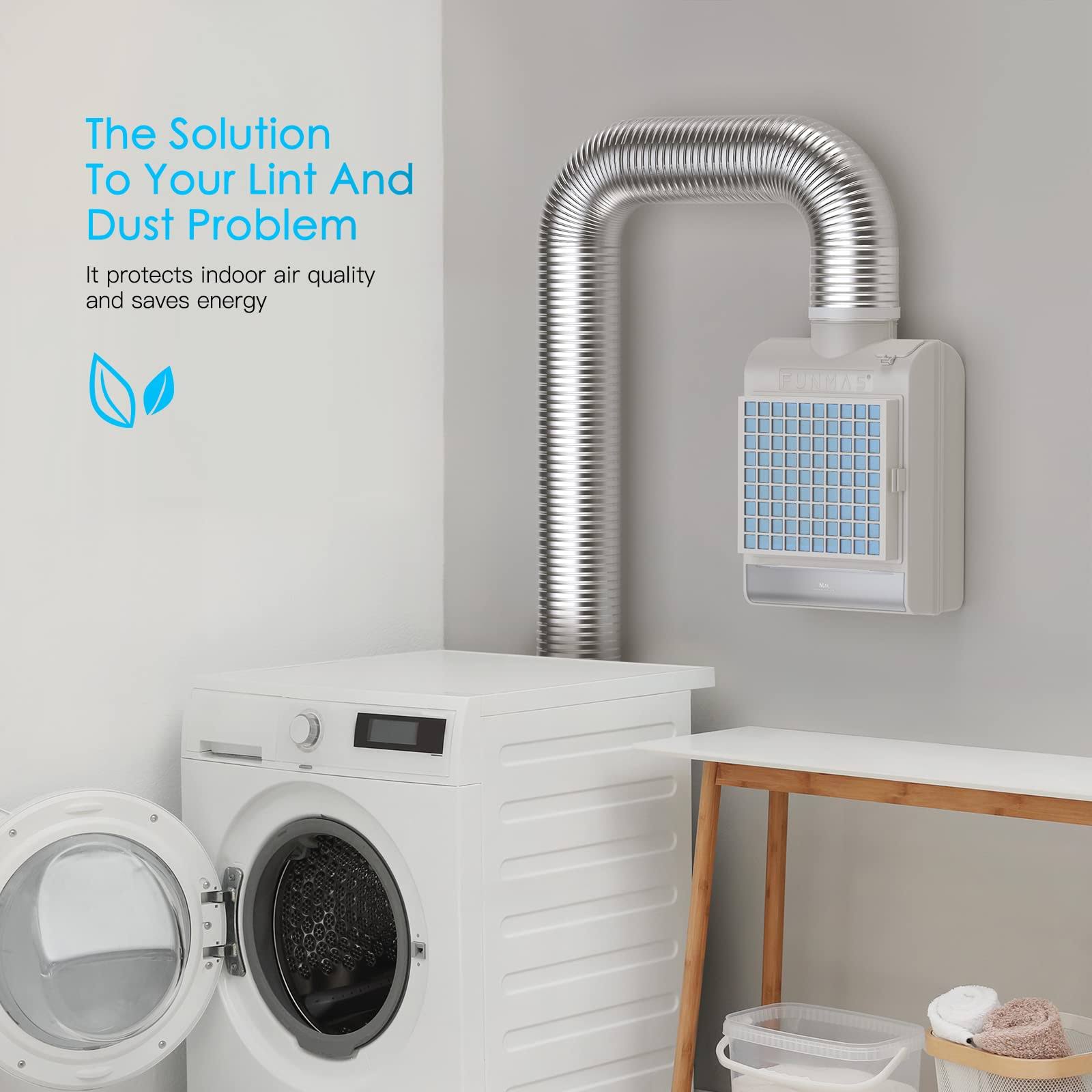 FUNMAS 3-in-1 Indoor Dryer Vent, Stainless Steel Screen Filter, Polyester Filter and Water Drawer System, Upgrade Safety Vent Flap, with 4 Pieces