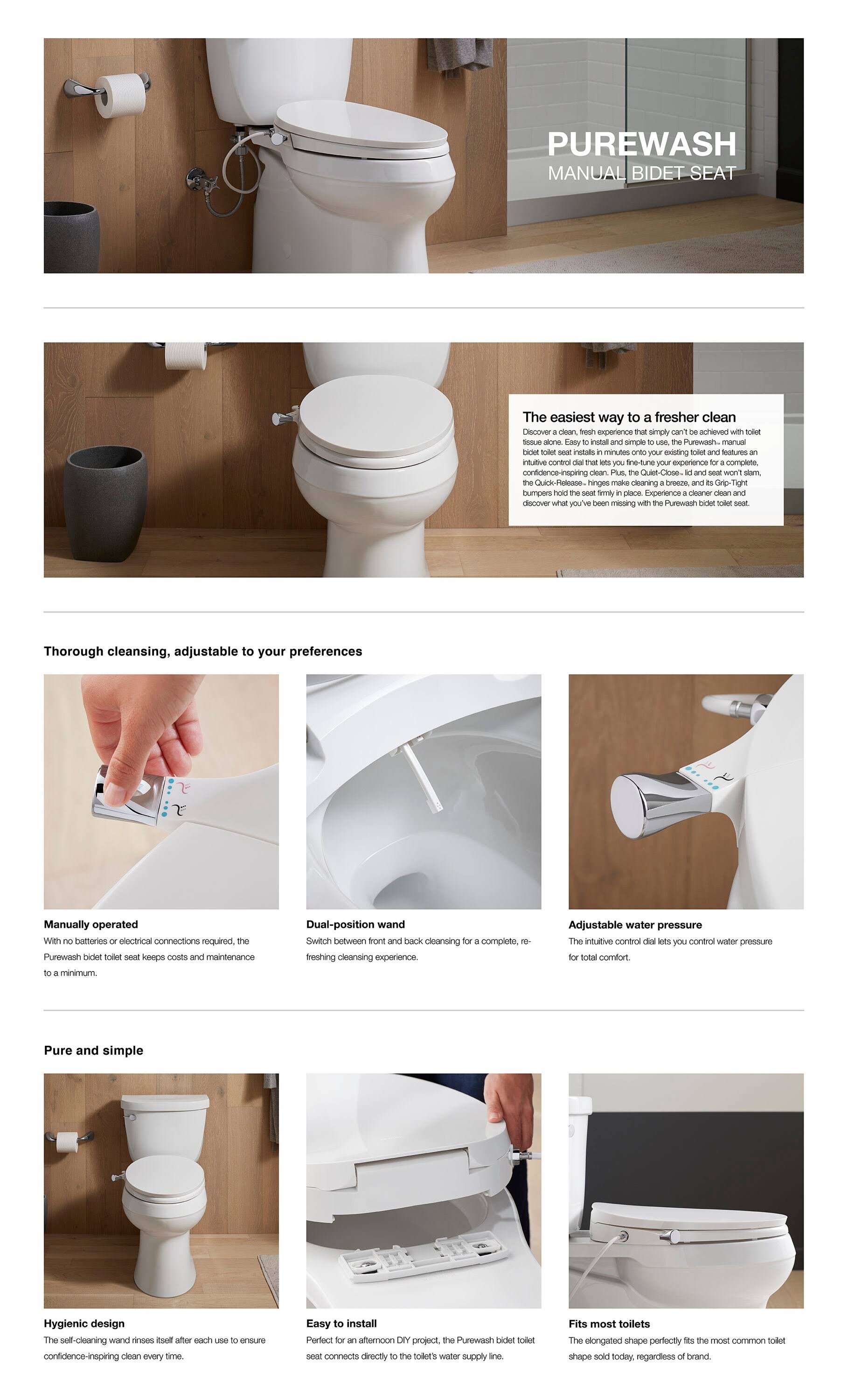 Kohler 98804-CP PureWash Elongated Manual Bidet Toilet Seat- White