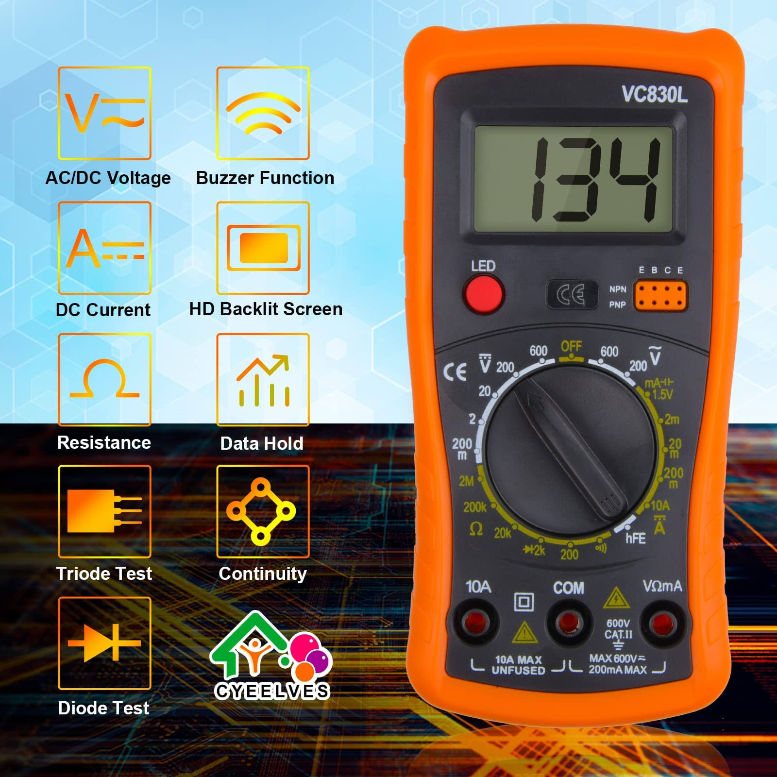 Cyeelves Digital Multimeter, Multimeter with AC DC Voltmeter & Ohm Volt Amp Tester, Multifunction Battery Tester, Pocket Meter with Backlight Tests
