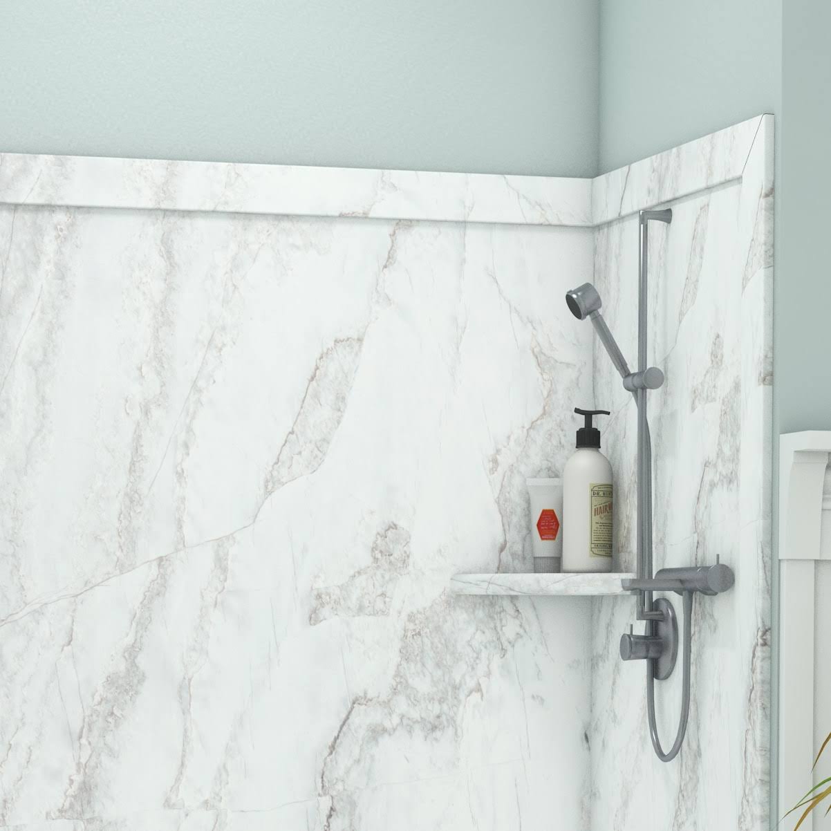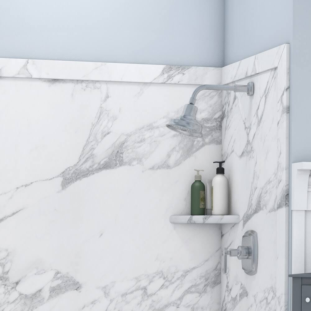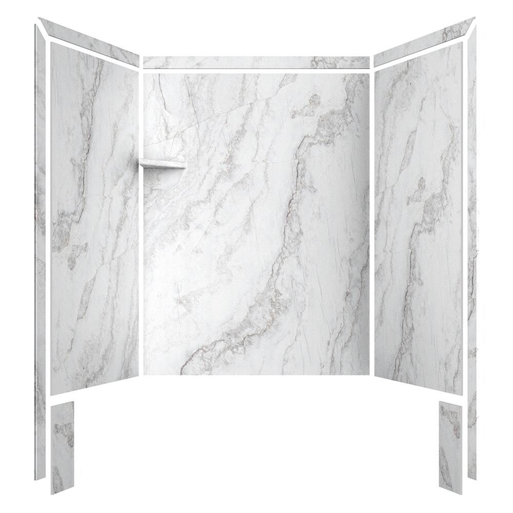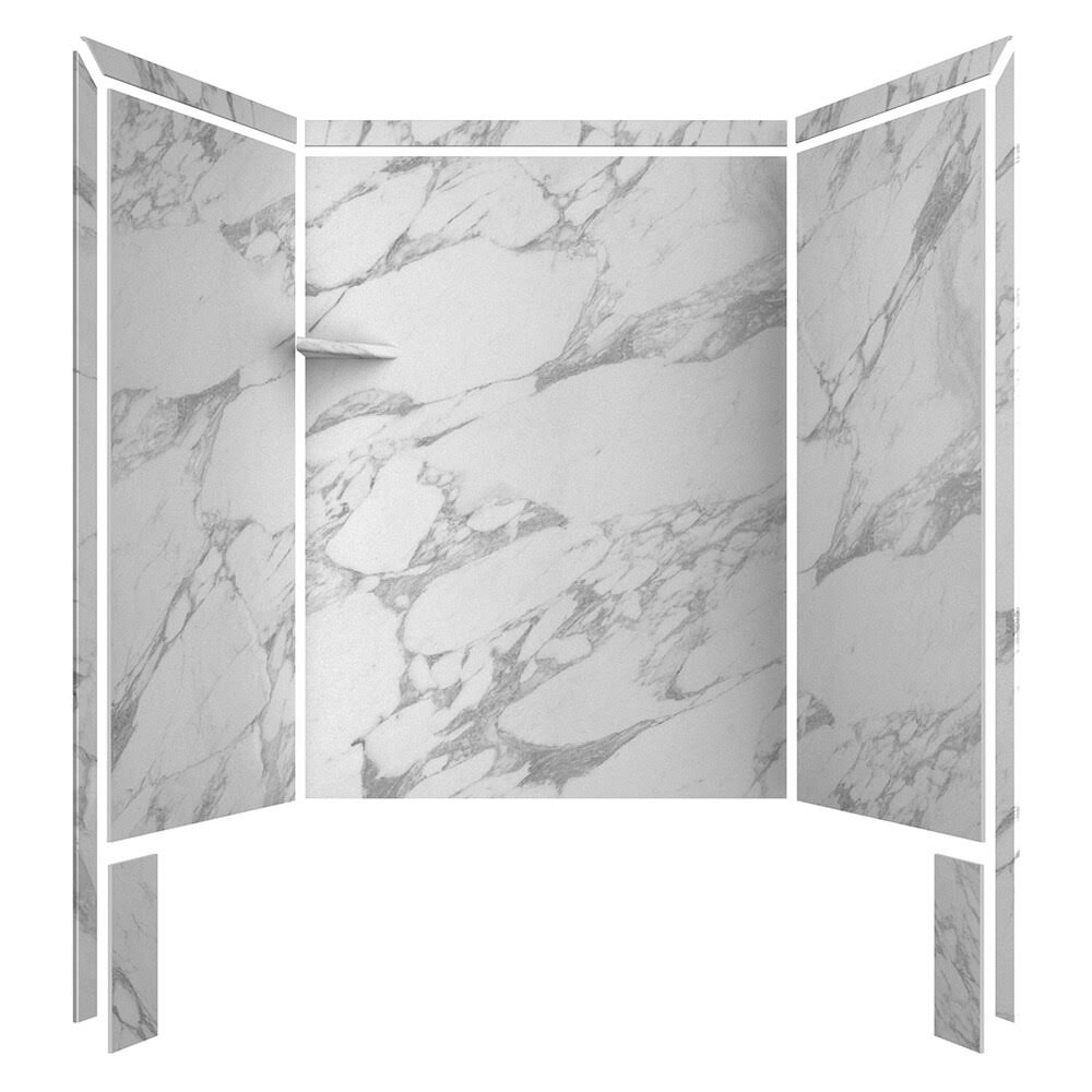 FlexStone Royale 36 in. x 60 in. x 80 in. 11-Piece Easy Up Adhesive Alcove Bathtub/Shower Wall Surround in Calacatta White
