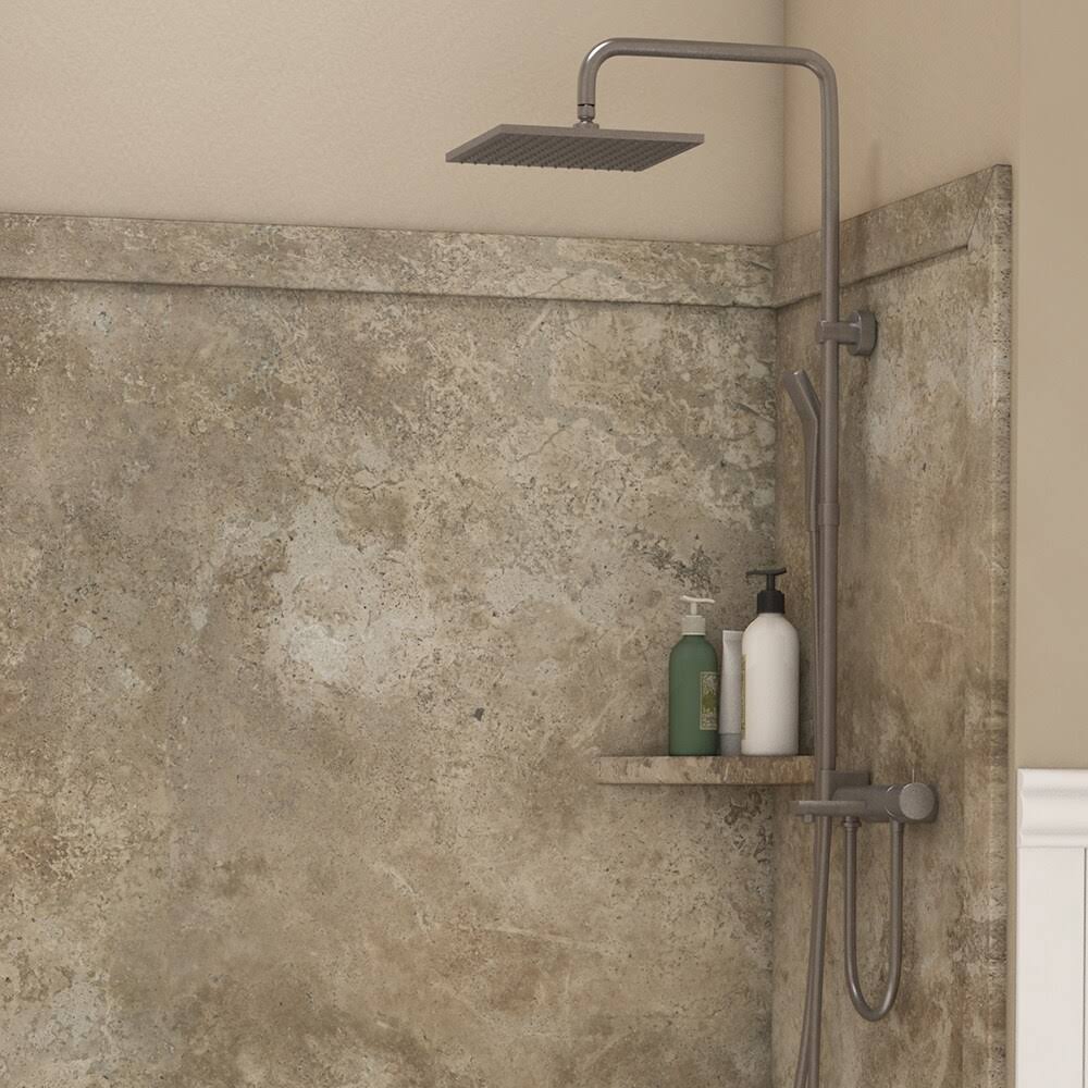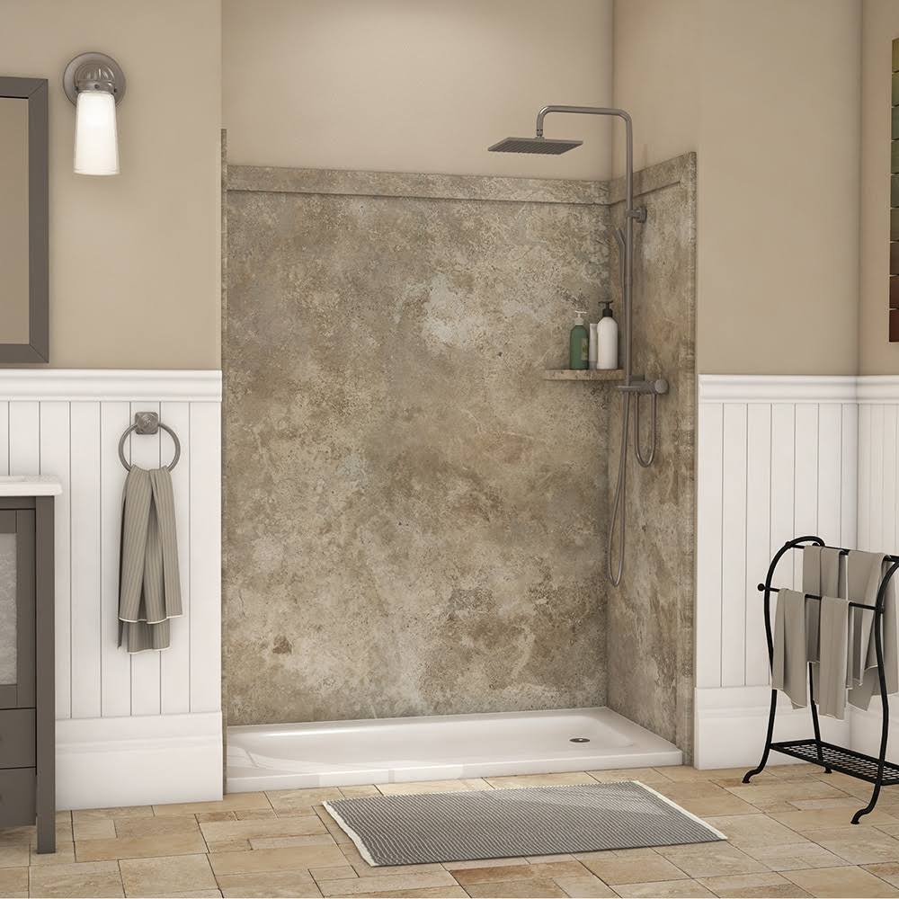 FlexStone Royale 36 in. x 60 in. x 80 in. 11-Piece Easy Up Adhesive Alcove Bathtub/Shower Wall Surround in Mocha Travertine