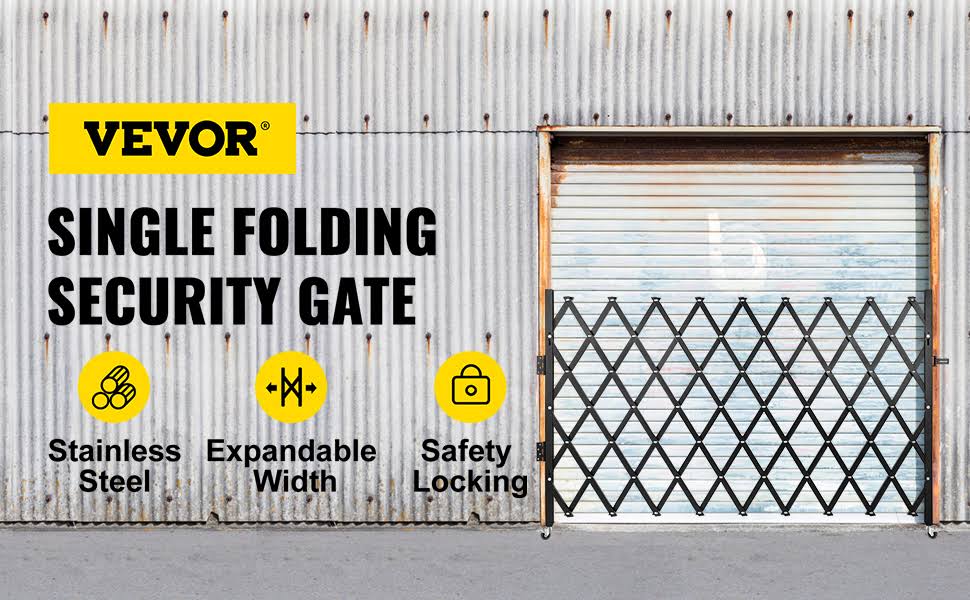 VEVOR Single Folding Security Gate 7.1'H x 7.9' W Folding Door Gate Steel Accordion Security Gate Flexible Expanding Security Gate 360�� Rolling