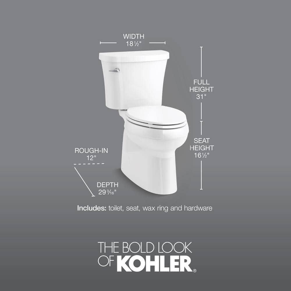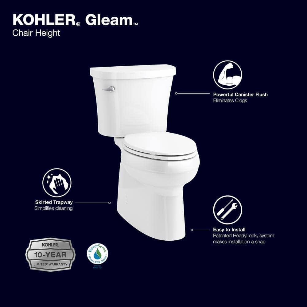 Kohler Gleam 2-Piece Chair Height 1.28 GPF Single Flush Elongated Toilet in White