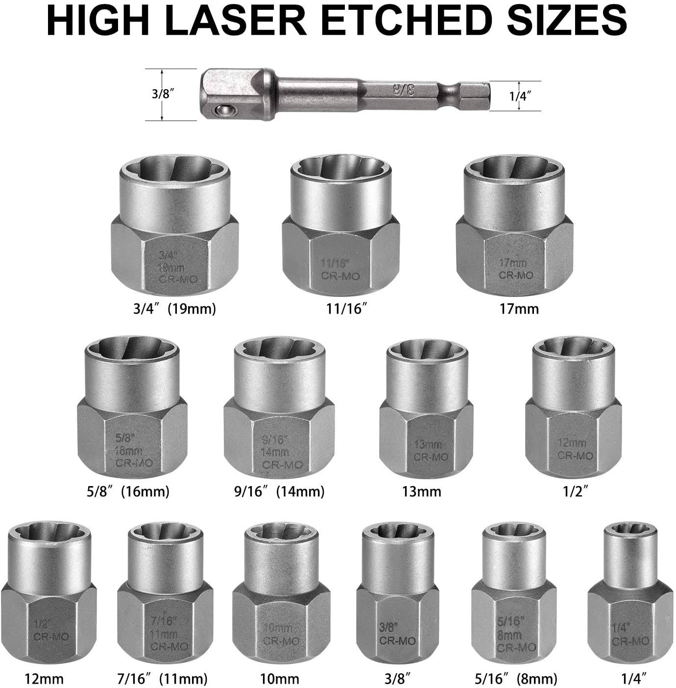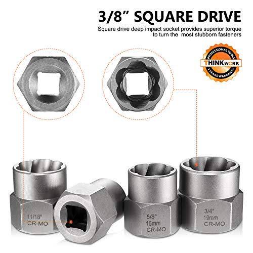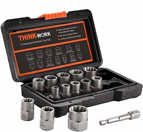THINKWORK Impact Bolt Extractor Set, 13+1 Pieces Nut Removal Tool, Stripped Lug
