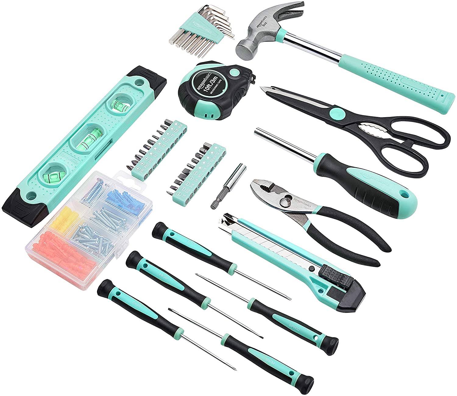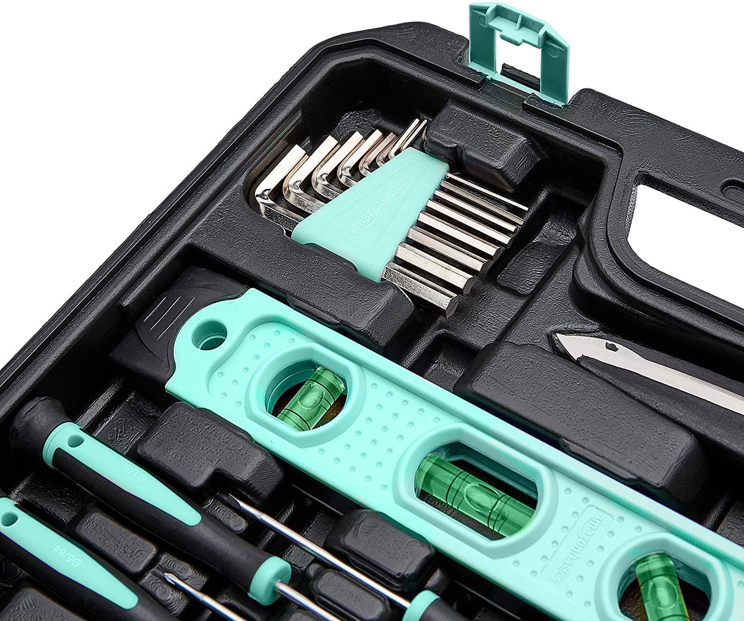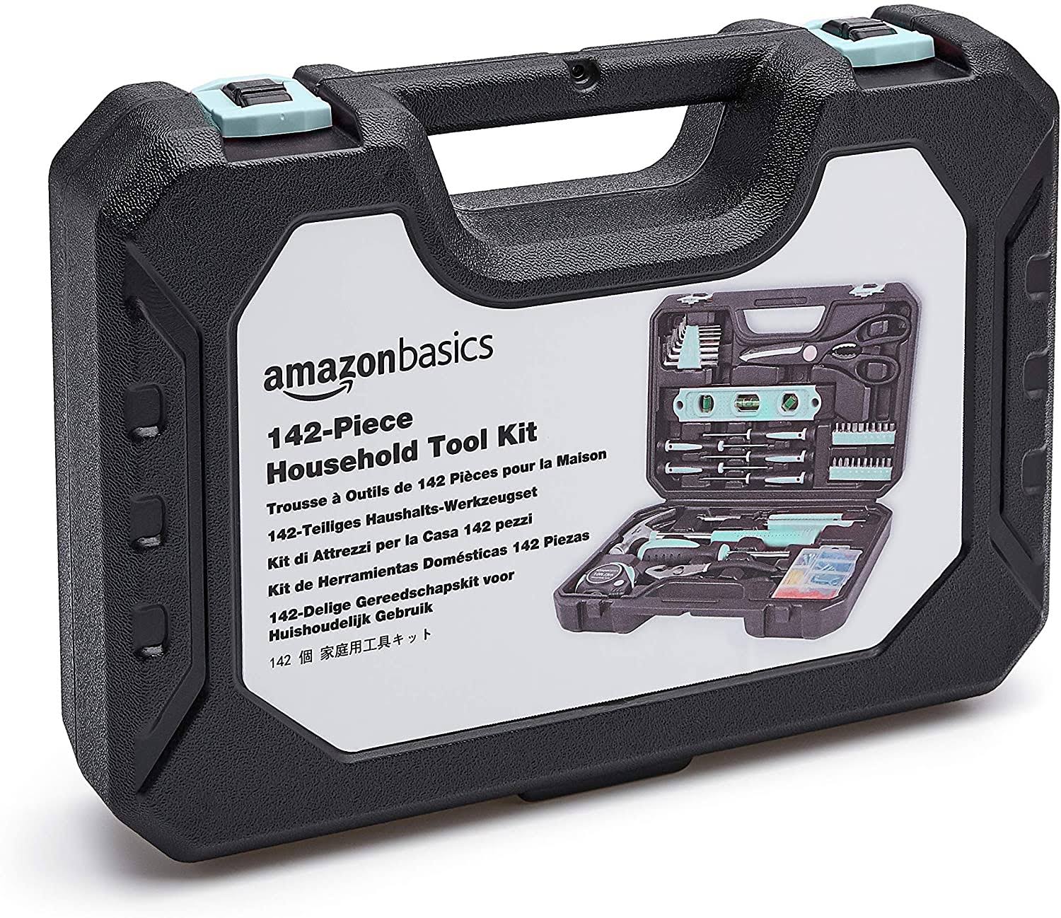 Amazon Basics Household Tool Kit with Storage Case, 142 Piece, Turquoise, 13.39 x 9.25 x 2.95 inch