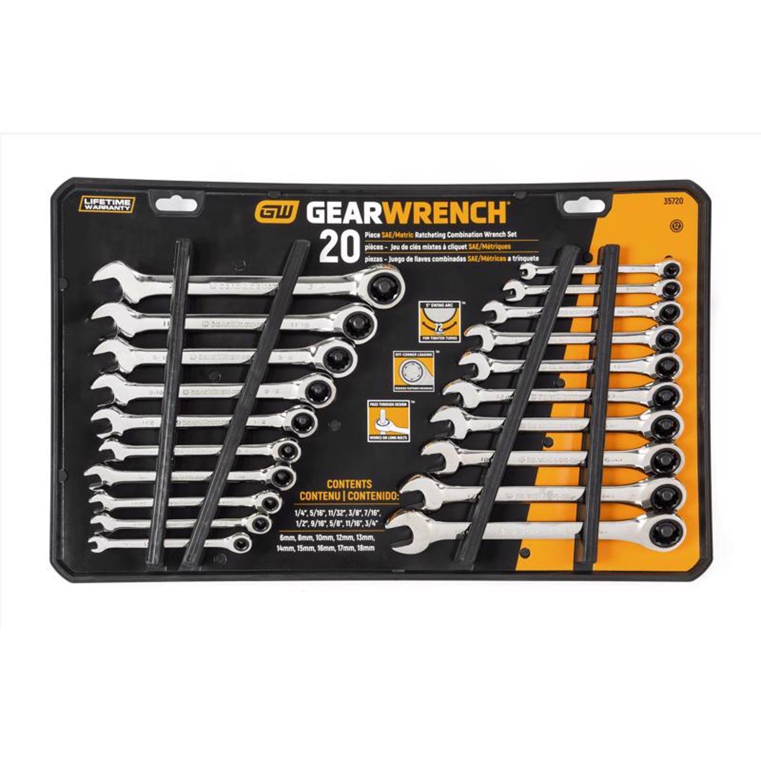 GearWrench SAE/Metric Ratcheting Wrench 20 Piece Set 35720-06
