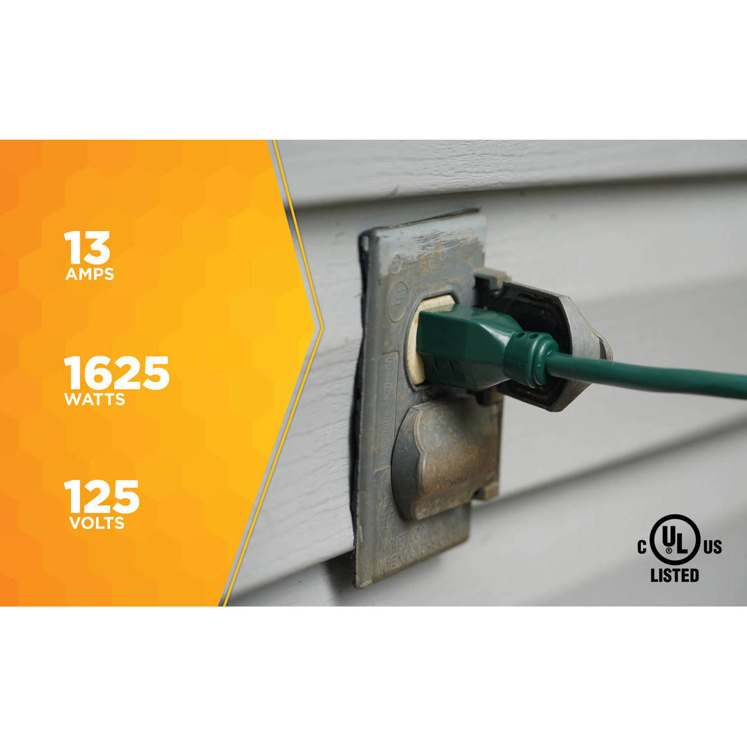 Woods 2466 8-Foot Outdoor Extension Cord with 3-Outlets, Green