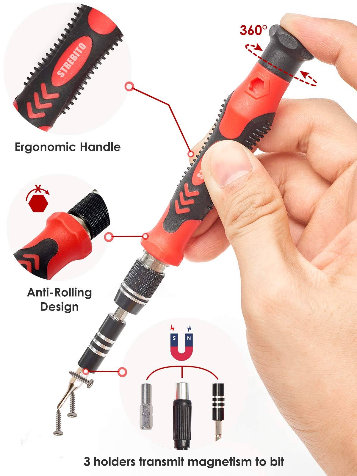 STREBITO Precision Screwdriver Sets,142-Piece Electronics Precision Screwdriver with 120 Bits Magnetic Repair Tool Kit for iPhone, Computer,Household