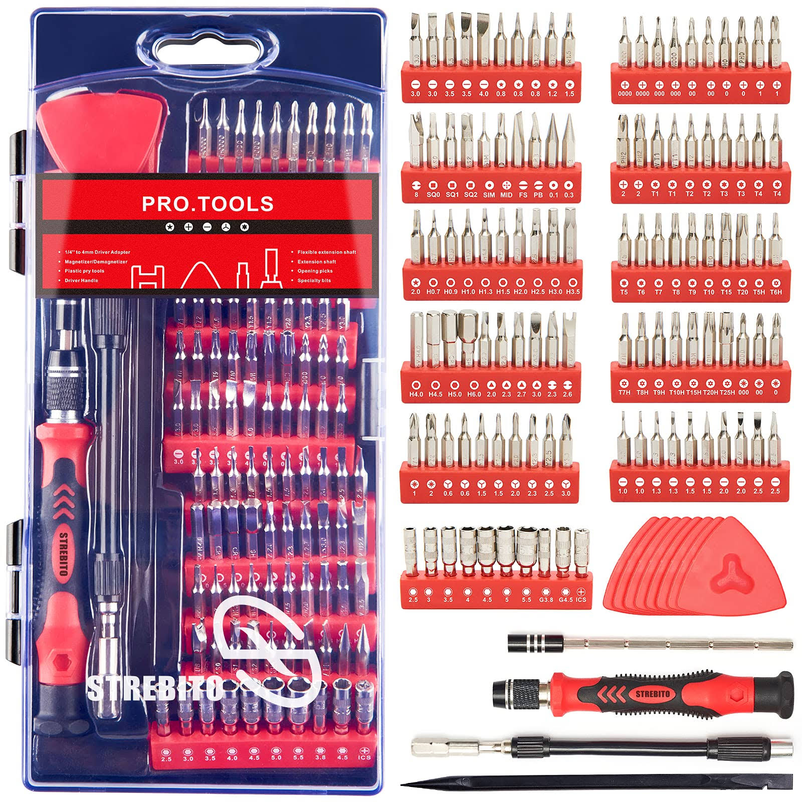 STREBITO Screwdriver Sets 142-Piece Electronics Precision Screwdriver with 120 Bits Magnetic Repair Tool Kit for iPhone, MacBook, Coumputer, Laptop, T