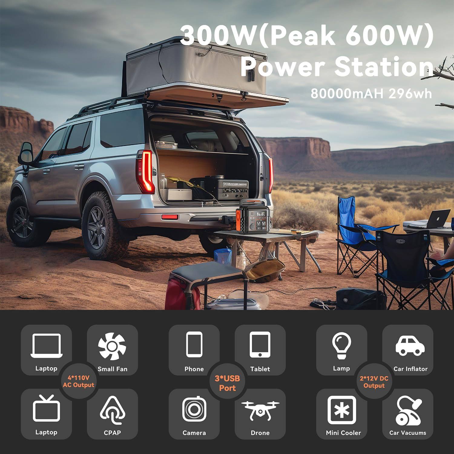 Steelite Portable Power Station 300W (Peak 600W) 296Wh Solar Generator with 110V Pure Sine Wave AC Outlets Backup Lithium Battery for Outdoors