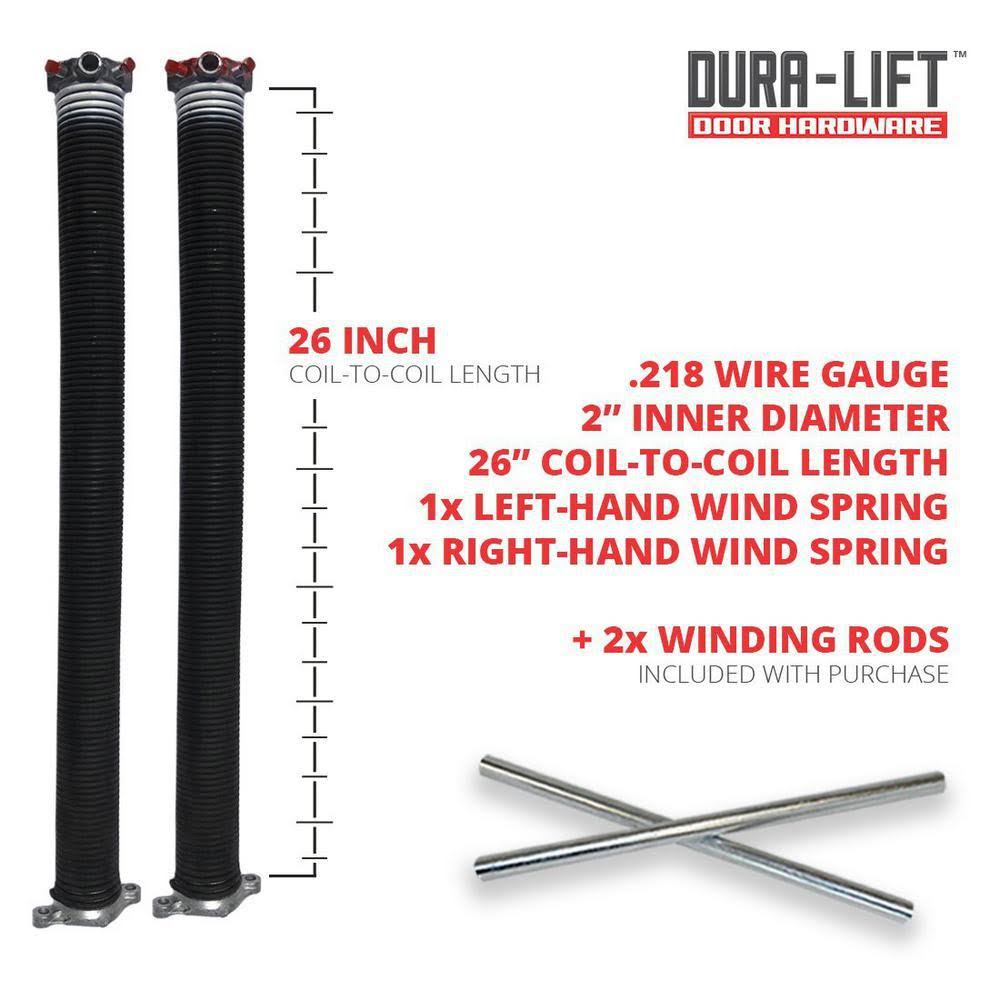 Dura-lift .218 x 2" x 26" Torsion Garage Door Spring (White, Right Wound)