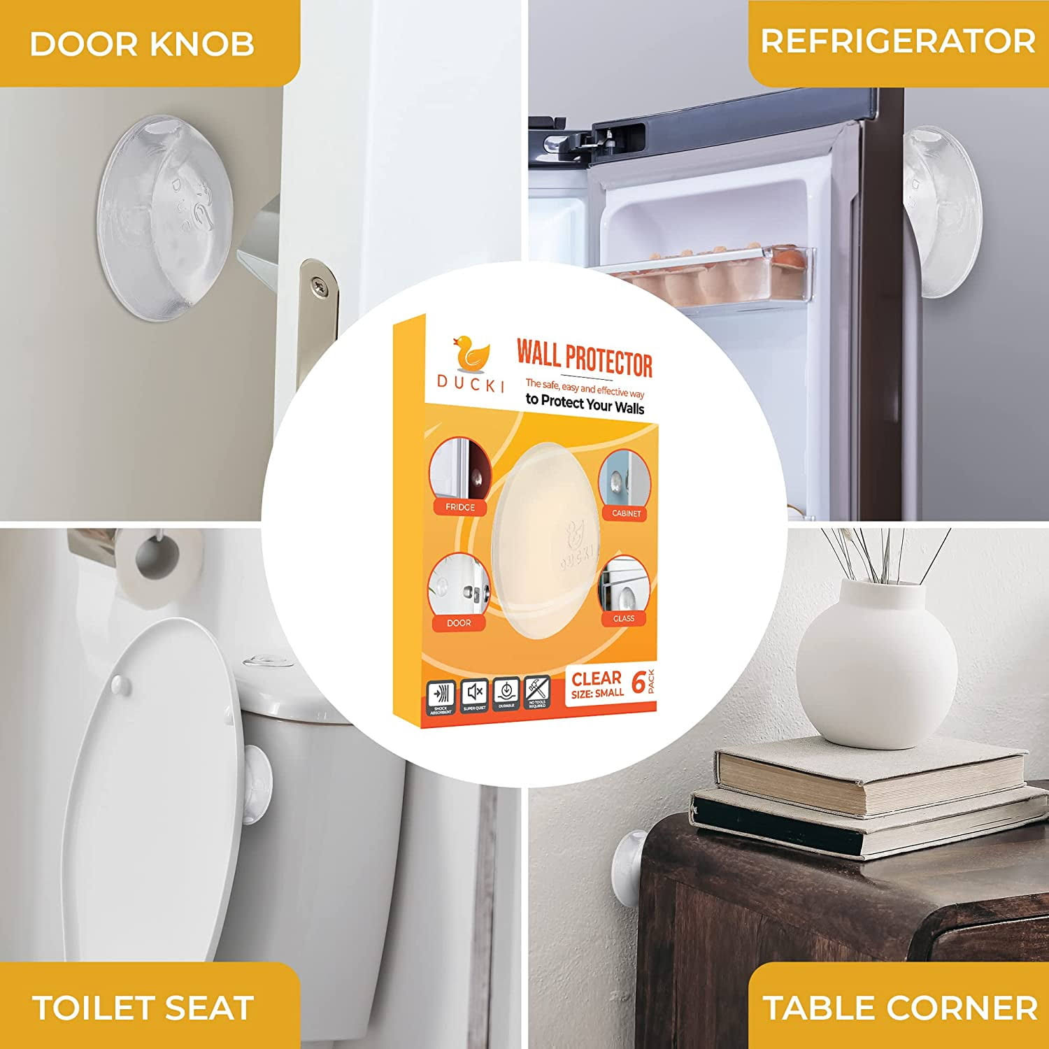 Ducki Wall Protectors- 6 Pack Clear- Self Adhesive, Reusable Solution for Stopping Wall Damage & Noise from Doors, Refrigerators & More in Your