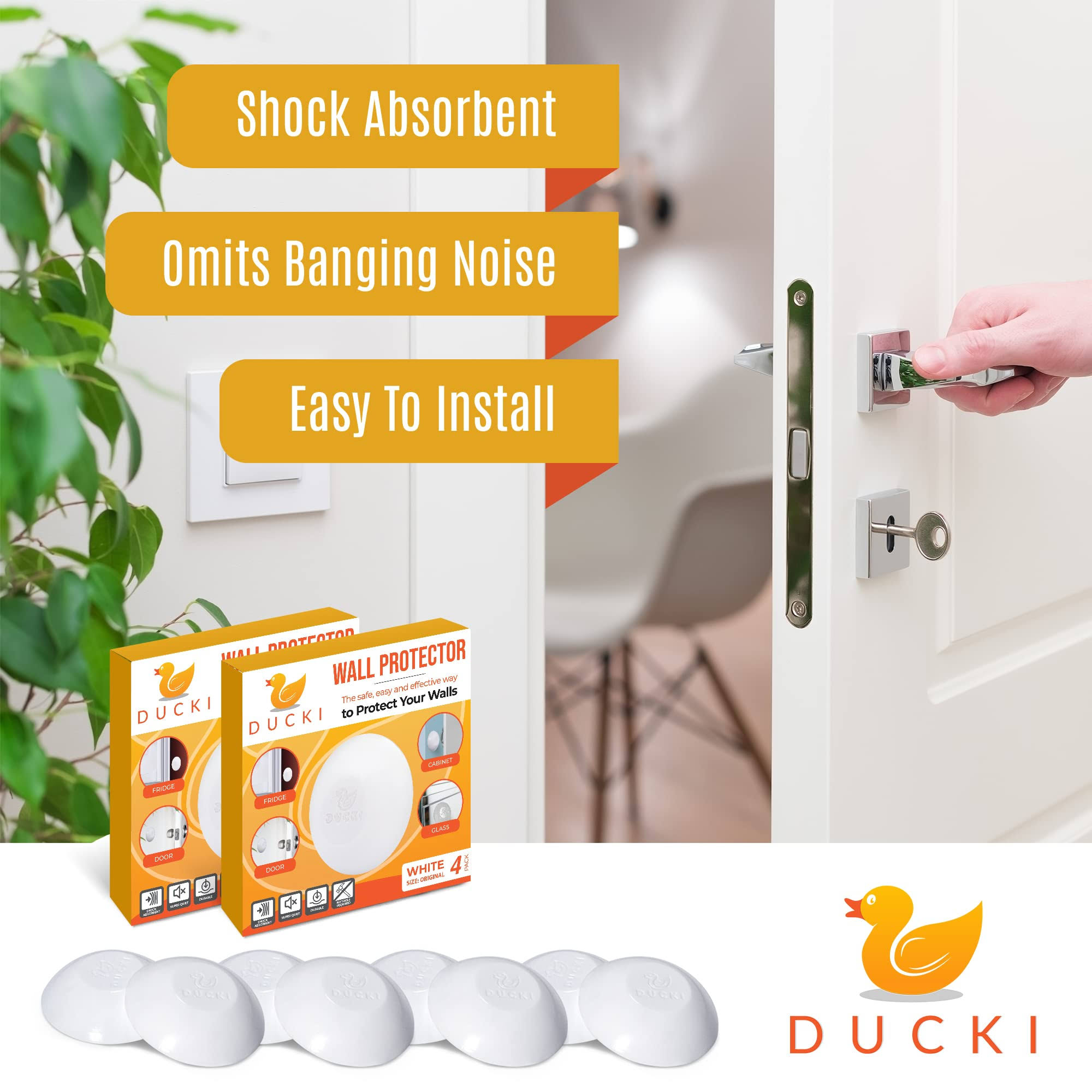 Ducki Wall Protectors- 8 Pack White- Self Adhesive, Reusable Solution for Stopping Wall Damage & Noise from Doors, Refrigerators & More in Your