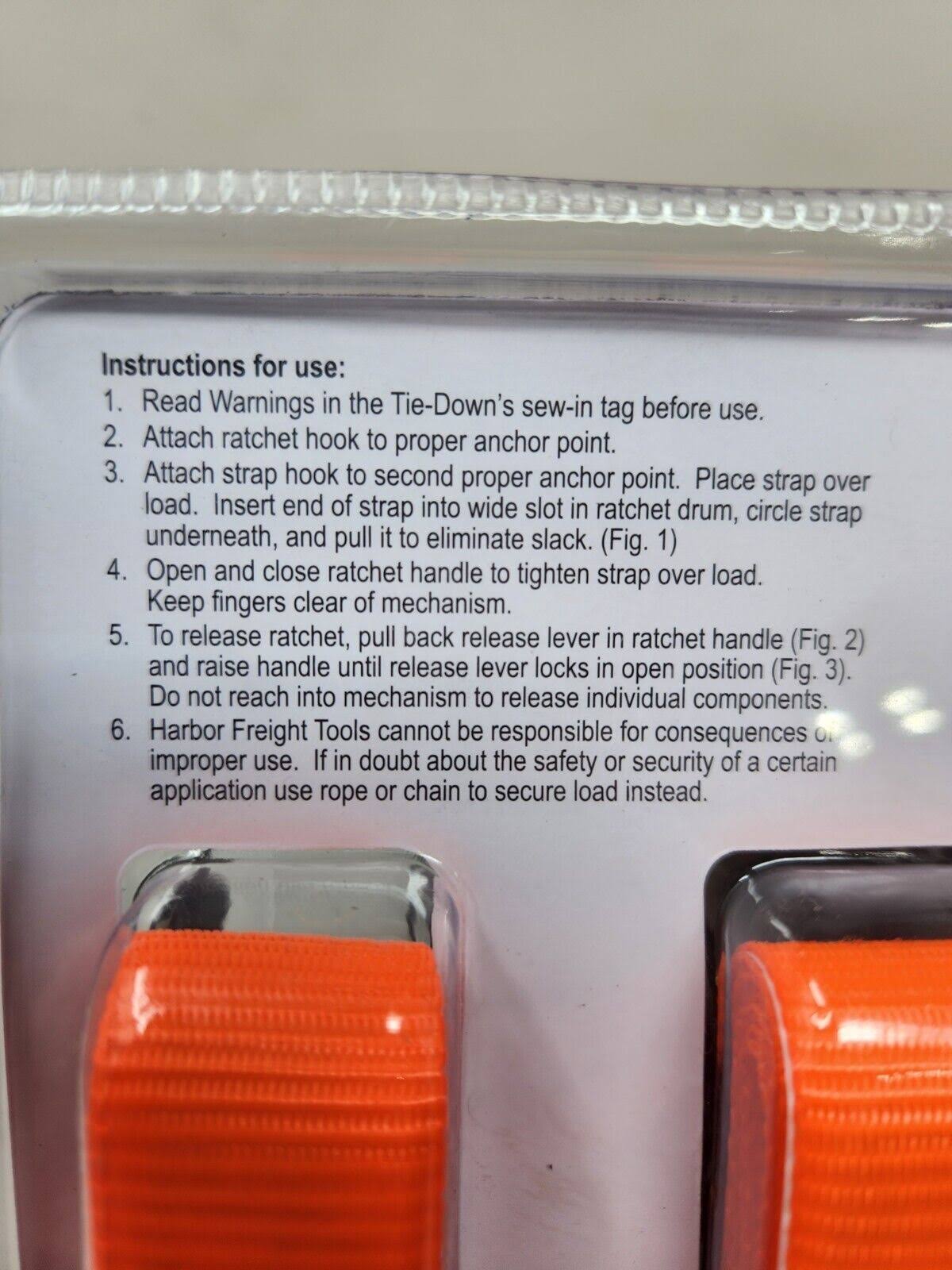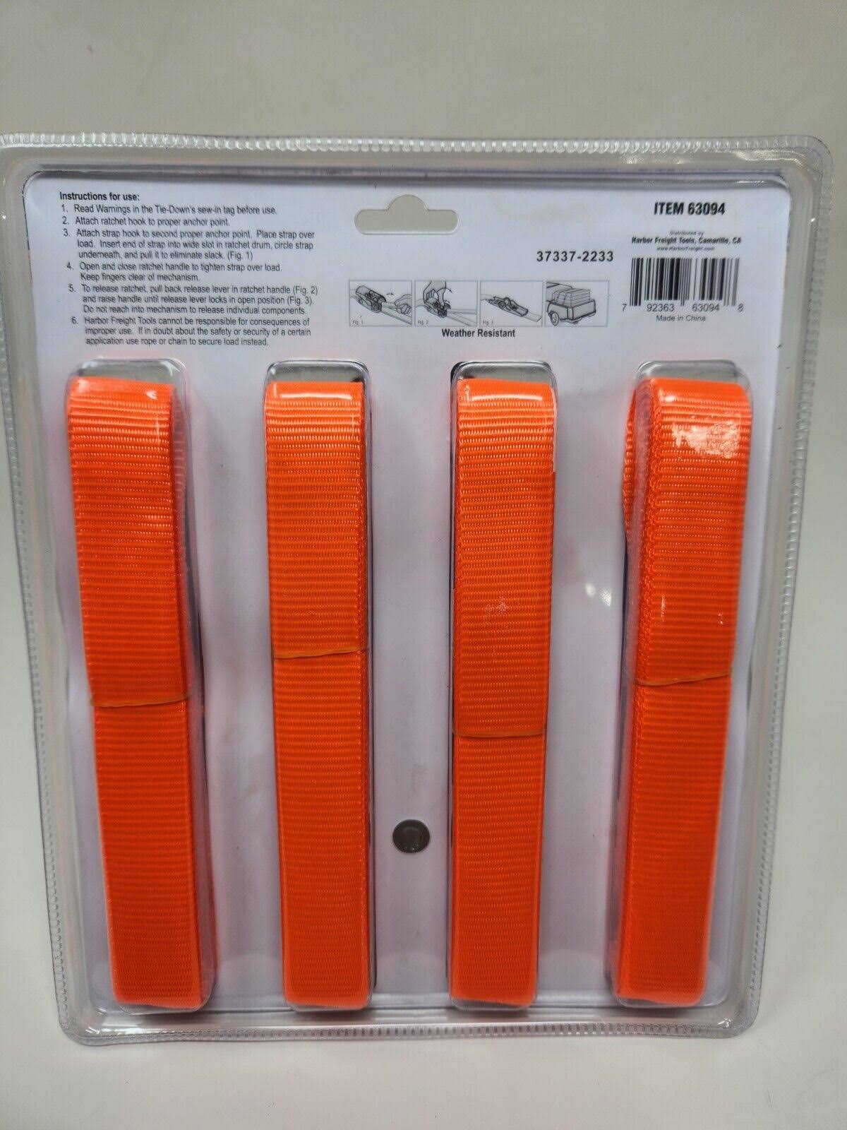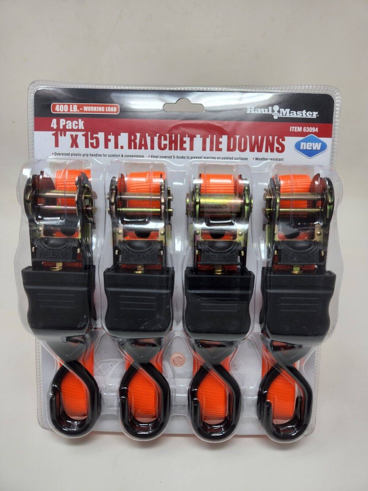 Ratchet Strap Tie Down Set 1 x 15ft 4 PC 400 lb. Capacity Break Stre