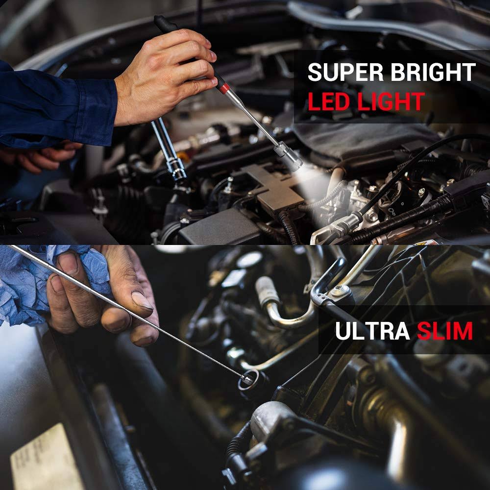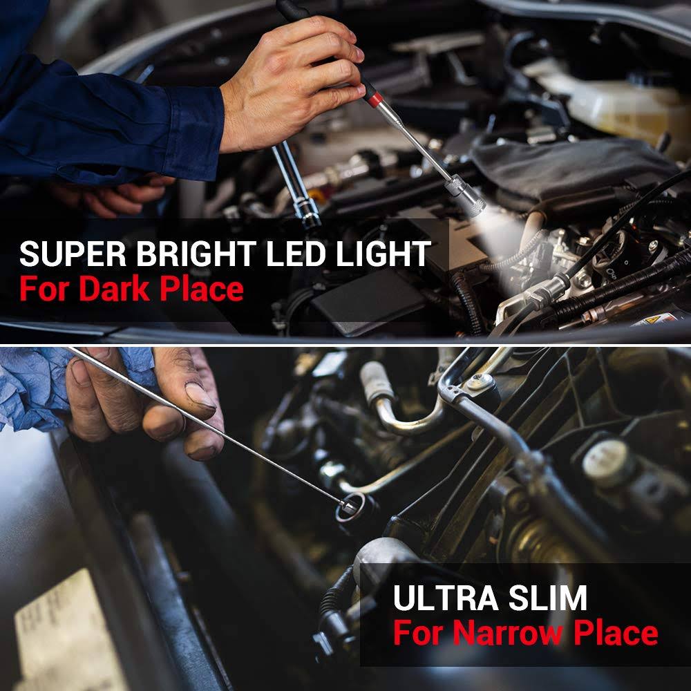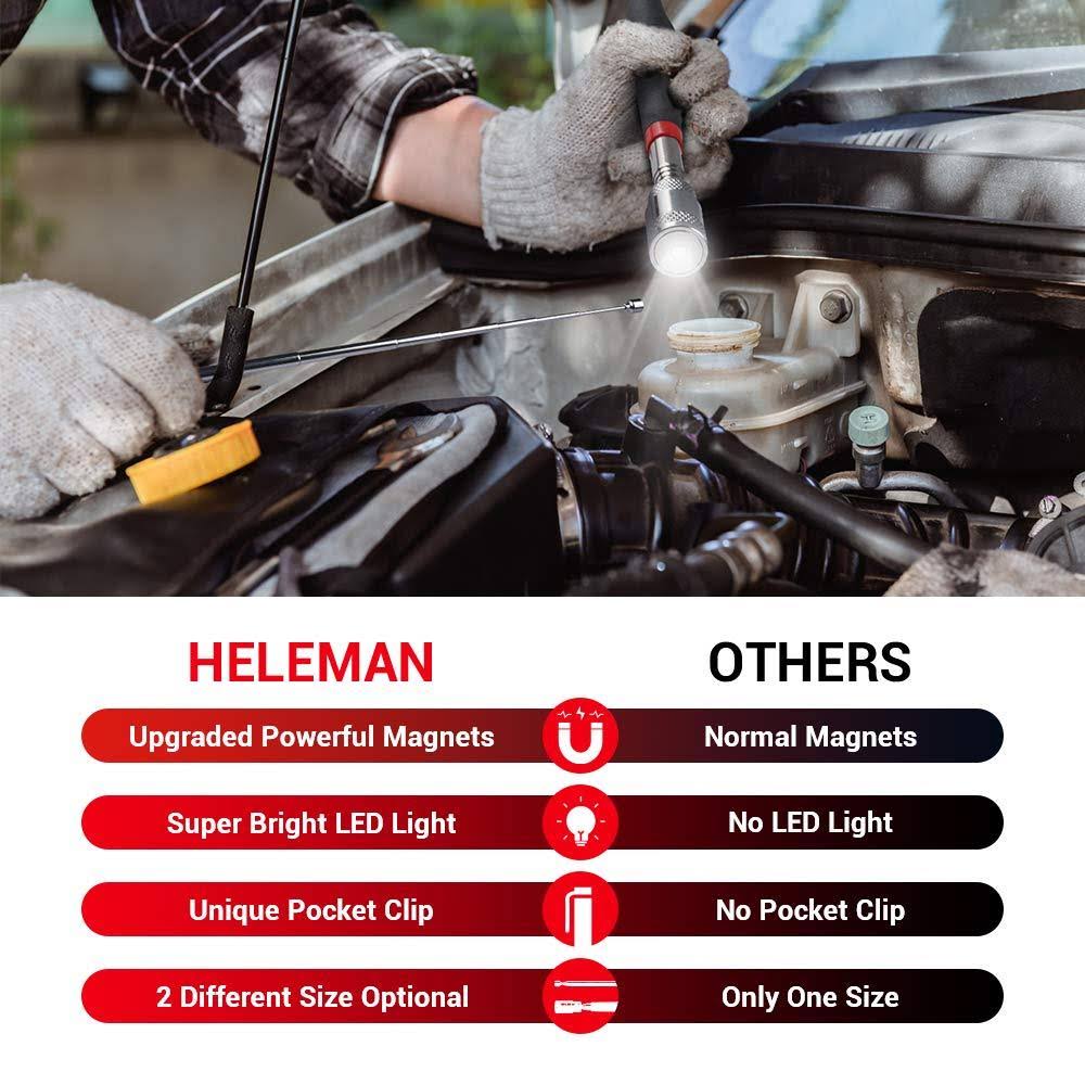 HELEMAN Magnetic Pickup Tools Gifts for Men- 2 Pcs Christmas Stocking Stuffers for Men Dad Birthday LED Telescoping Pick Up Tool Set Strong Magnet Fo