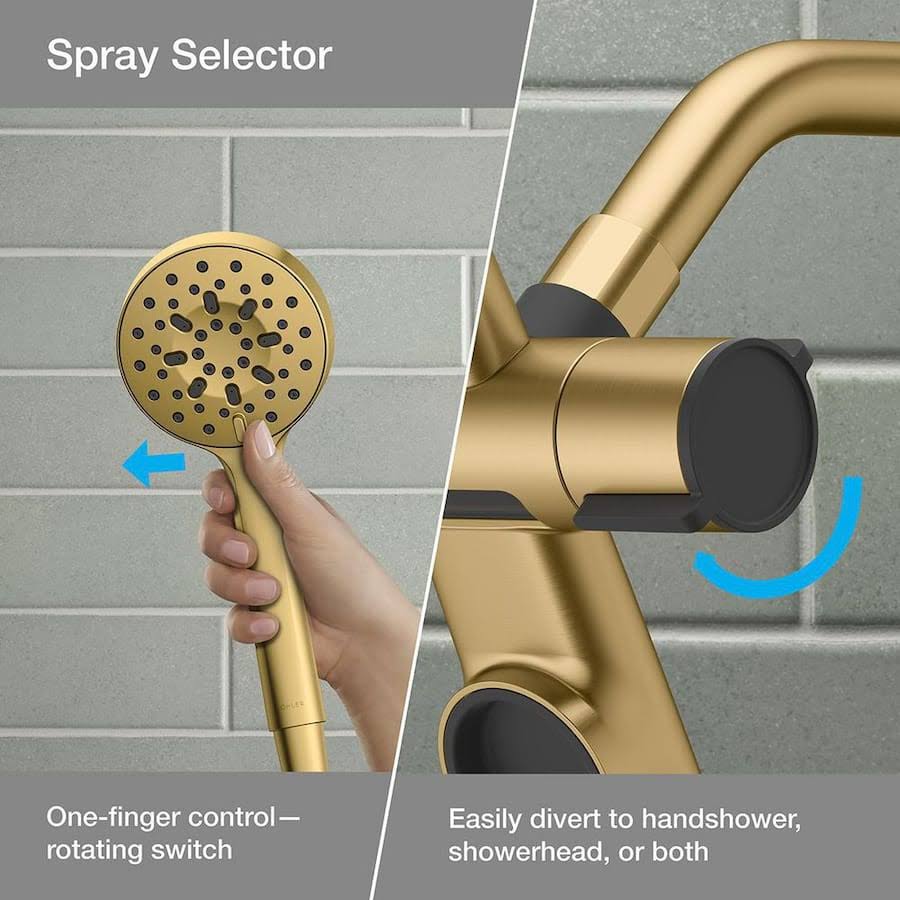 Kohler Viron 4-Spray 6 in. Dual Wall Mount Fixed and Handheld Shower Heads 1.75 GPM in Vibrant Brushed Moderne Brass