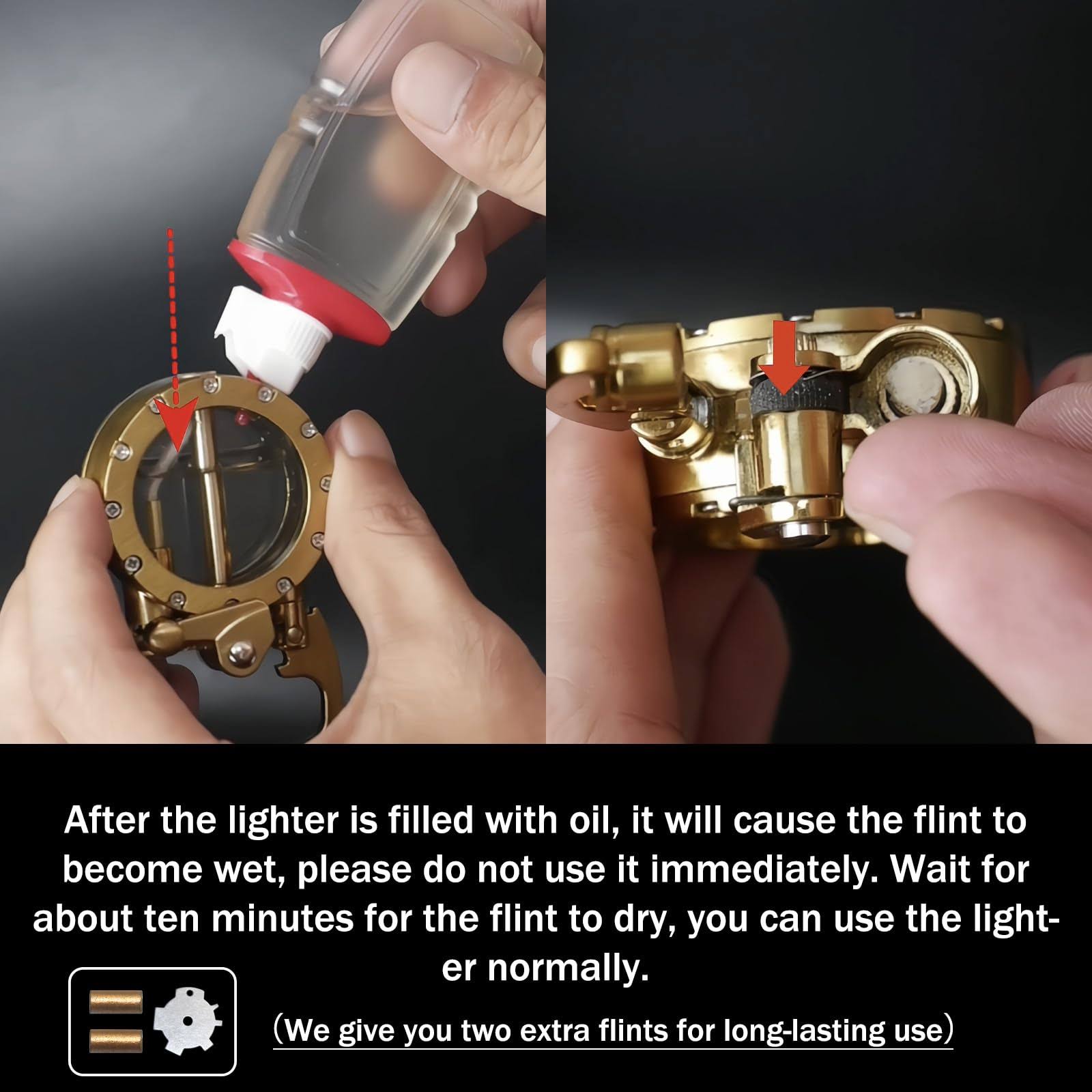 Vintage Trench Lighter, Cool Steampunk Kerosene Lighter, Portable Reusable Transparent Soft Flame Metal Antique Lighter, Unique Birthday Gifts for