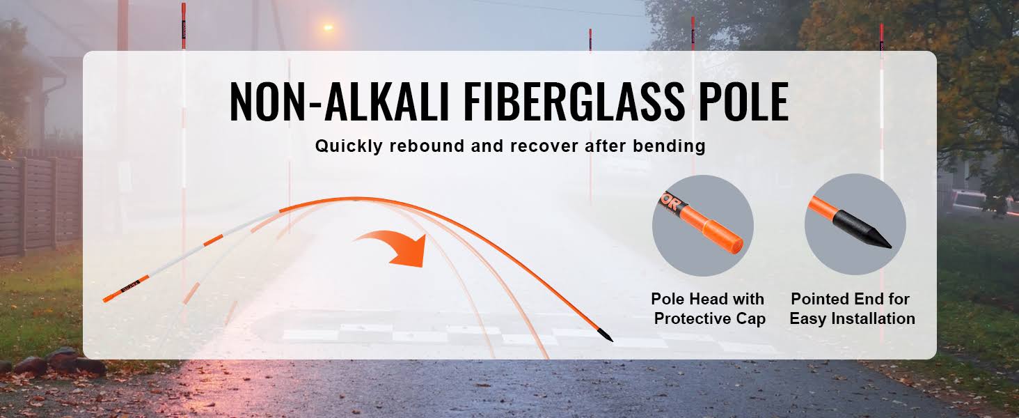 VEVOR Driveway Markers 48 inch 0.4 inch Diameter Orange Fiberglass Poles Snow Stakes with Reflective Tape- 50 Pack