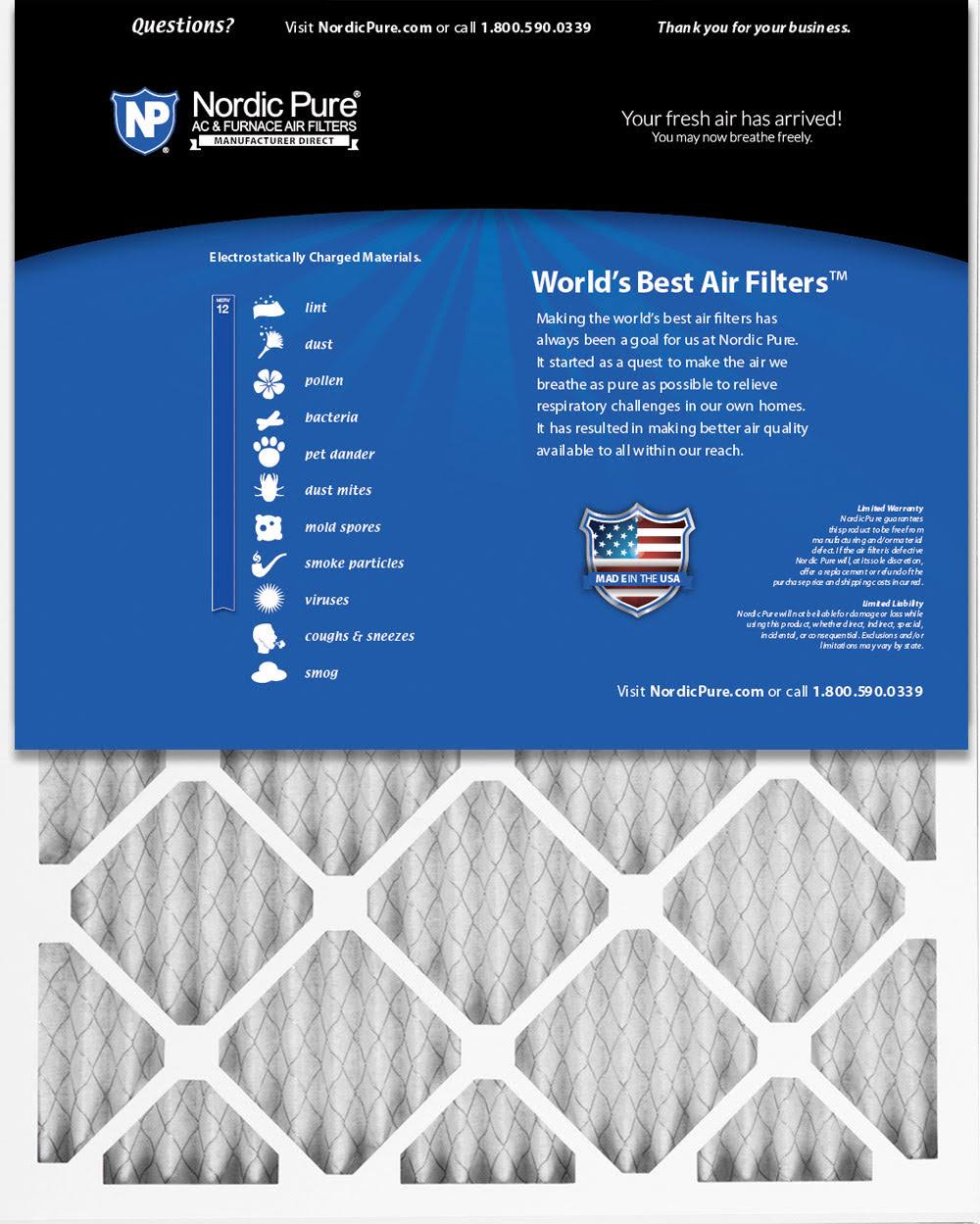 Nordic Pure 16x20x1 MERV 12 Pleated AC Furnace Air Filters 6 Pack