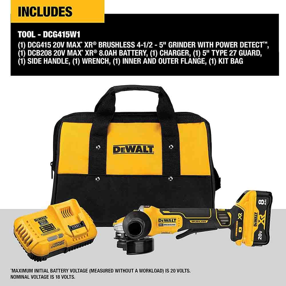DeWalt 20V Max XR 4-1/2- 5 in. Brushless Cordless Small Angle Grinder with Power Detect Tool Technology DCG415B